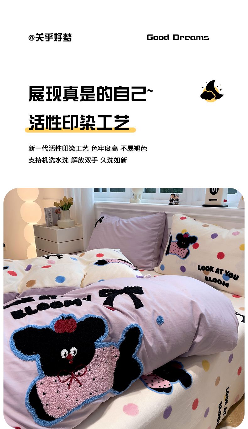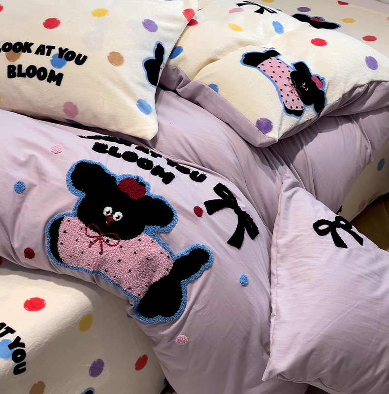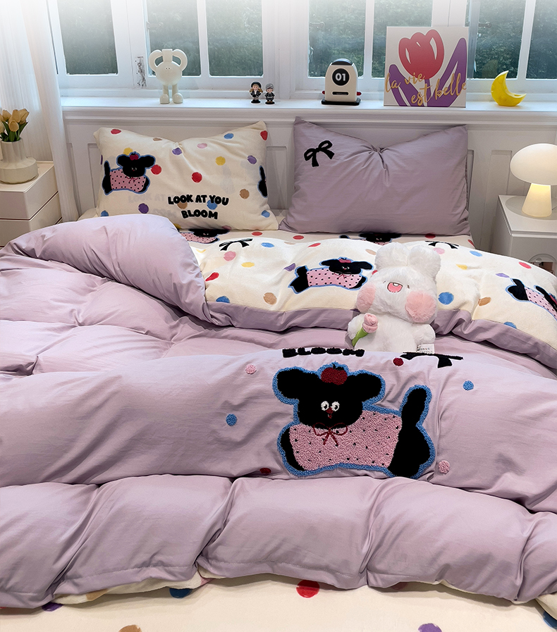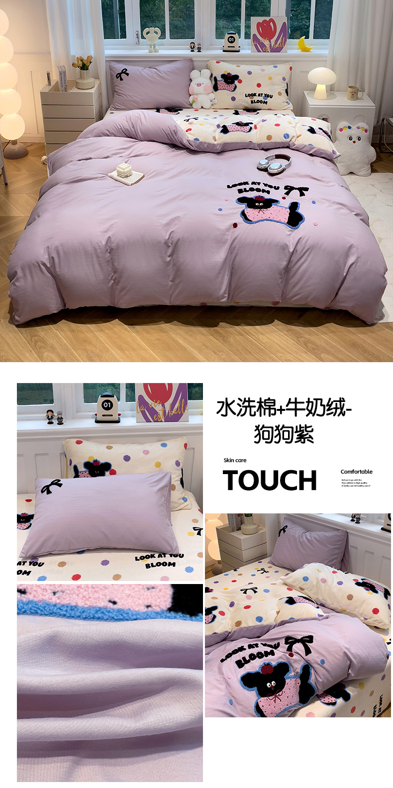 当前位置: 91家纺网 > 商品网购 > 床品套件 > 四件套 > 其它四件套 > 奈颜 2024新款冬季棉+绒毛巾绣四件套A版超柔水洗棉+B版加厚牛奶绒 狗狗紫