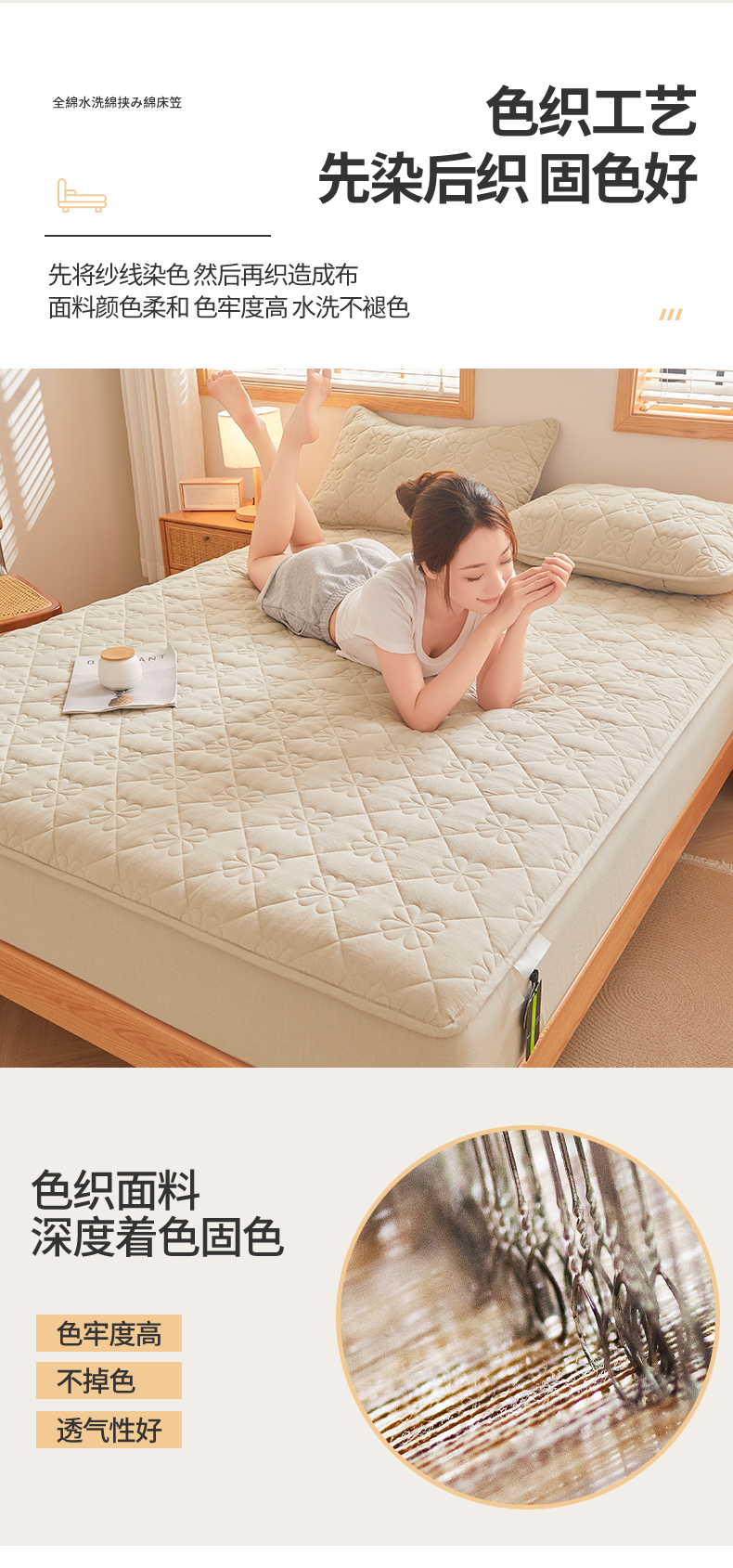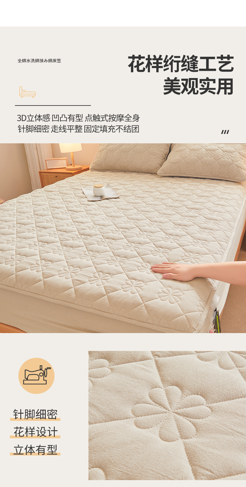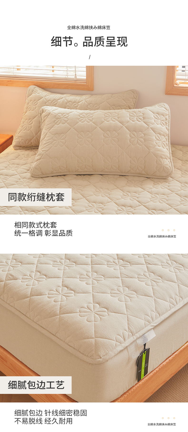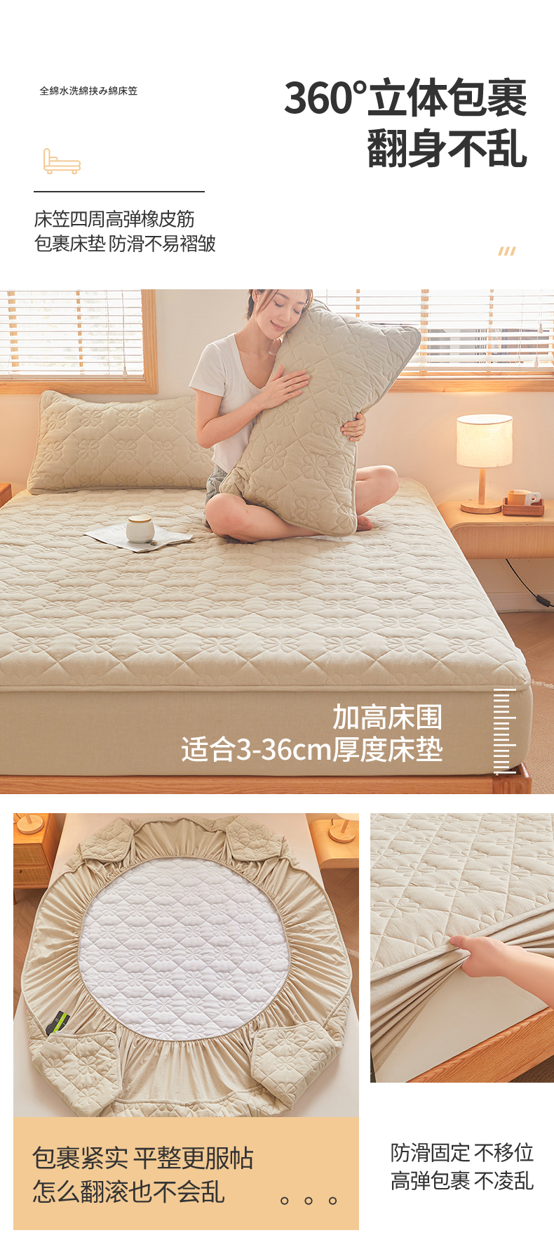 商品名称:3C 2024新款全棉水洗棉夹棉床笠-浅语系列 浅语-卡其