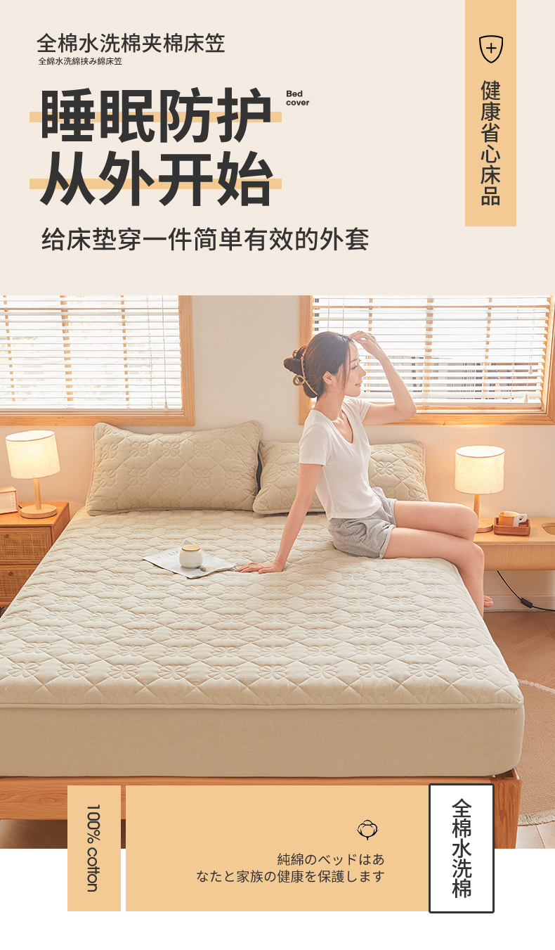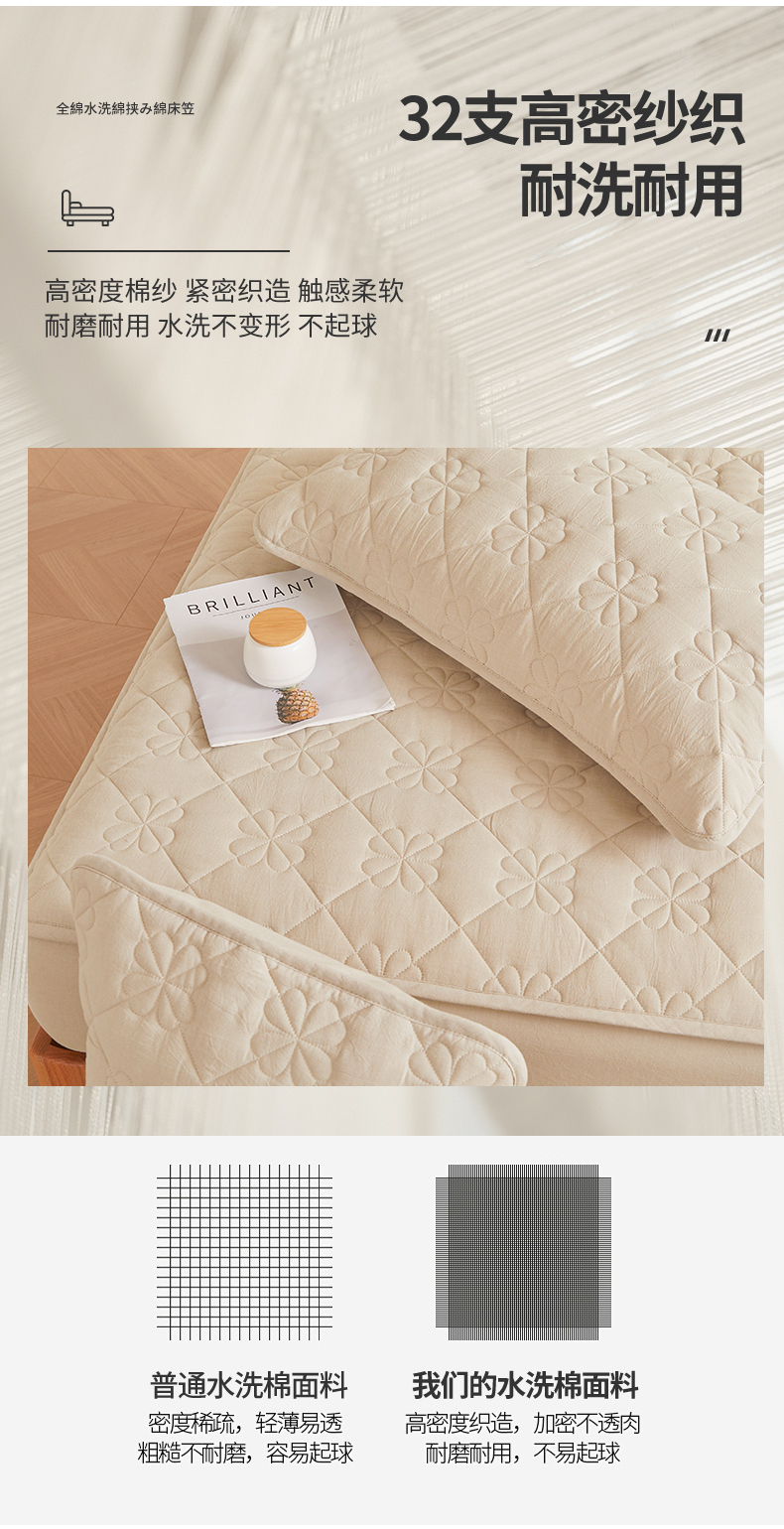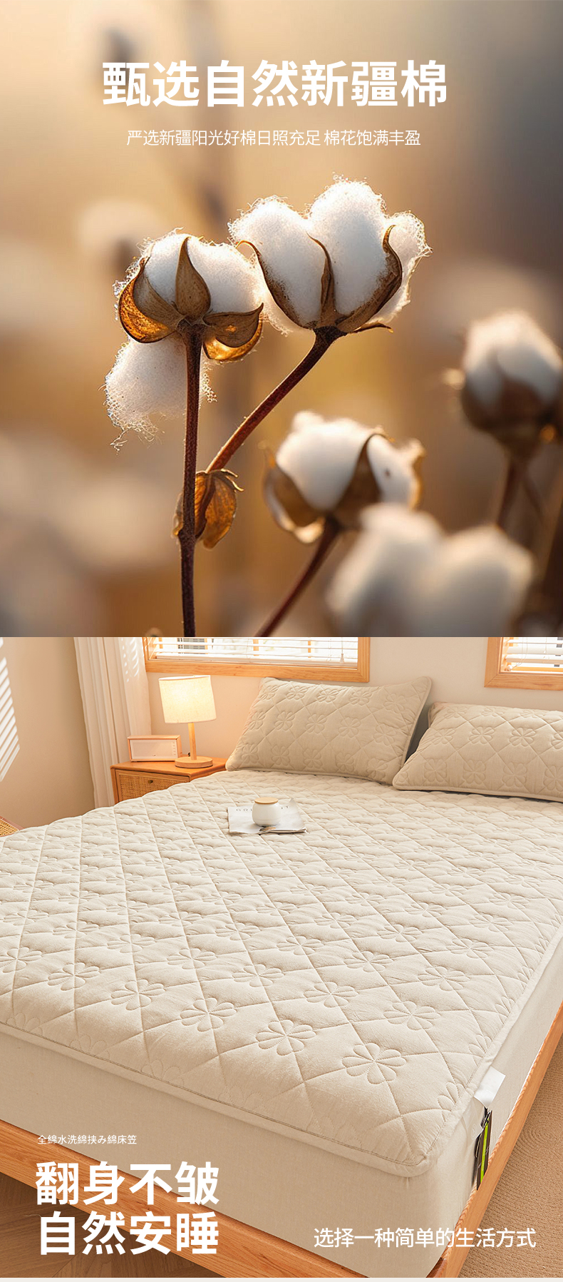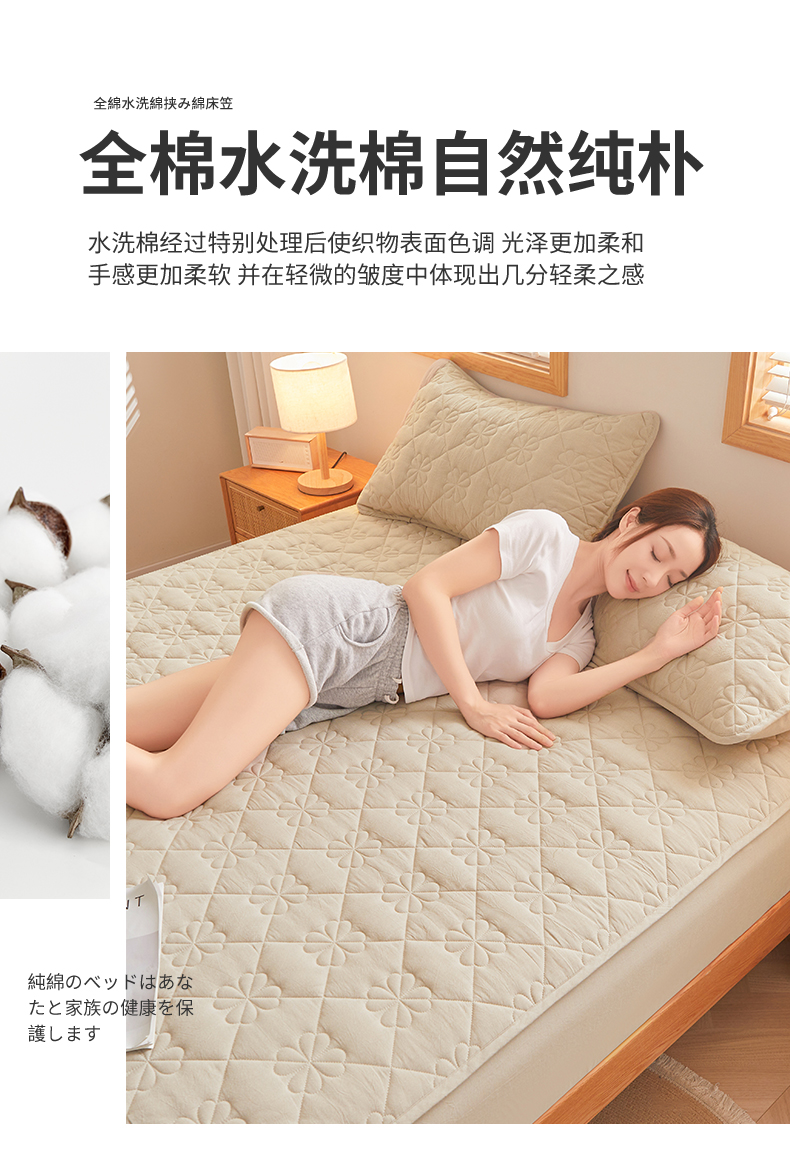 商品名称:3C 2024新款全棉水洗棉夹棉床笠-浅语系列 浅语-卡其