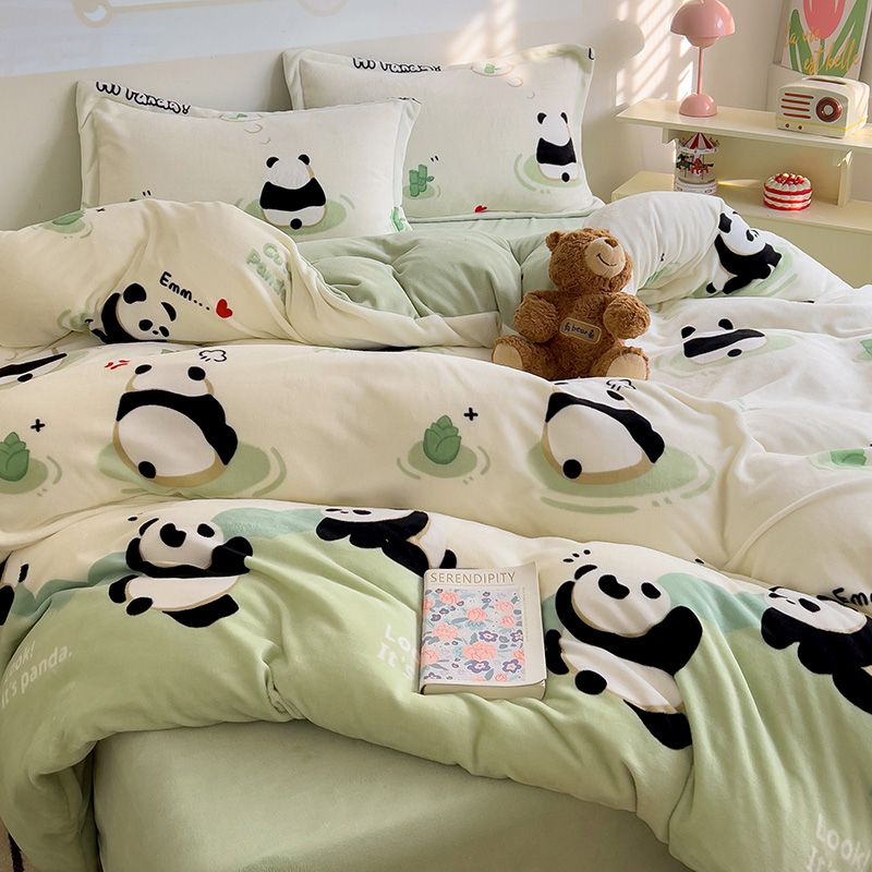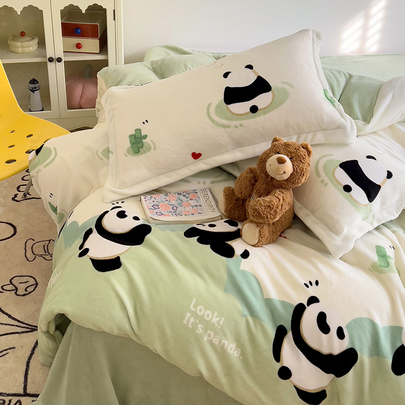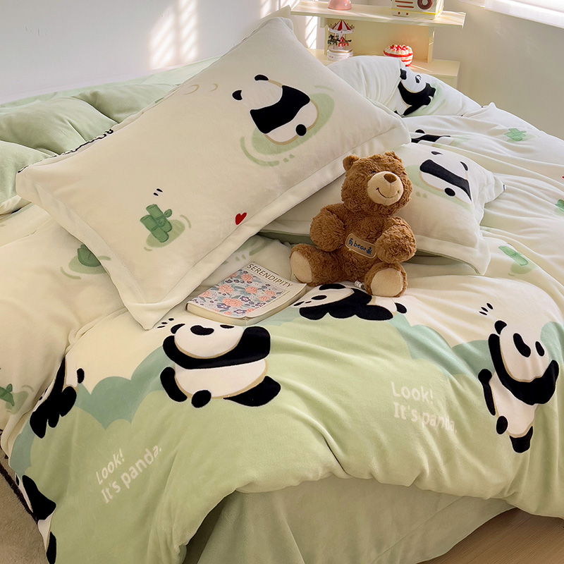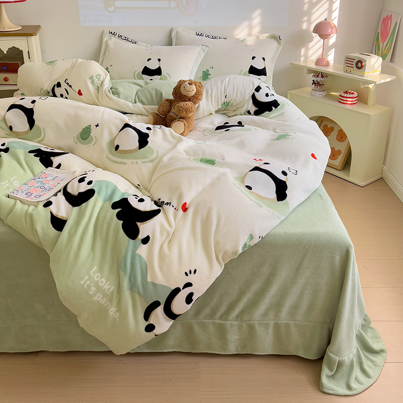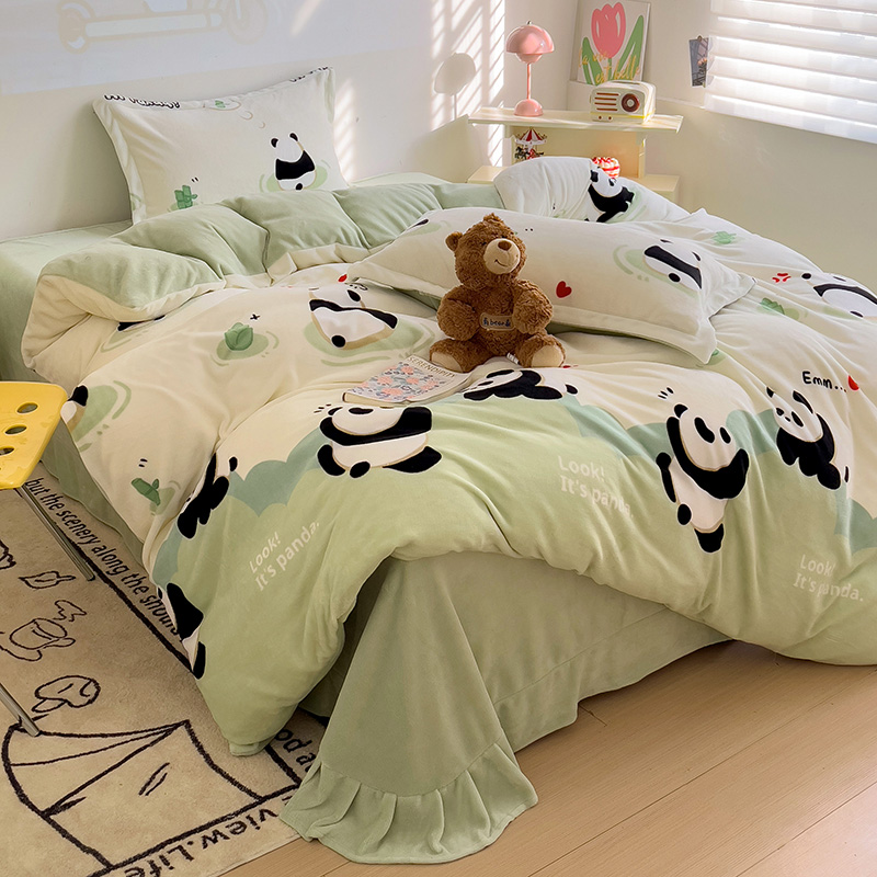 乐童家纺 2024新款跑量款牛奶绒床裙四件套 熊猫之家