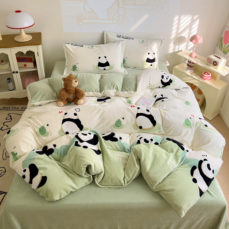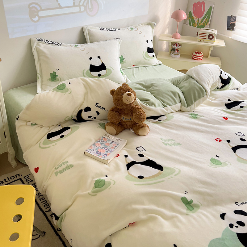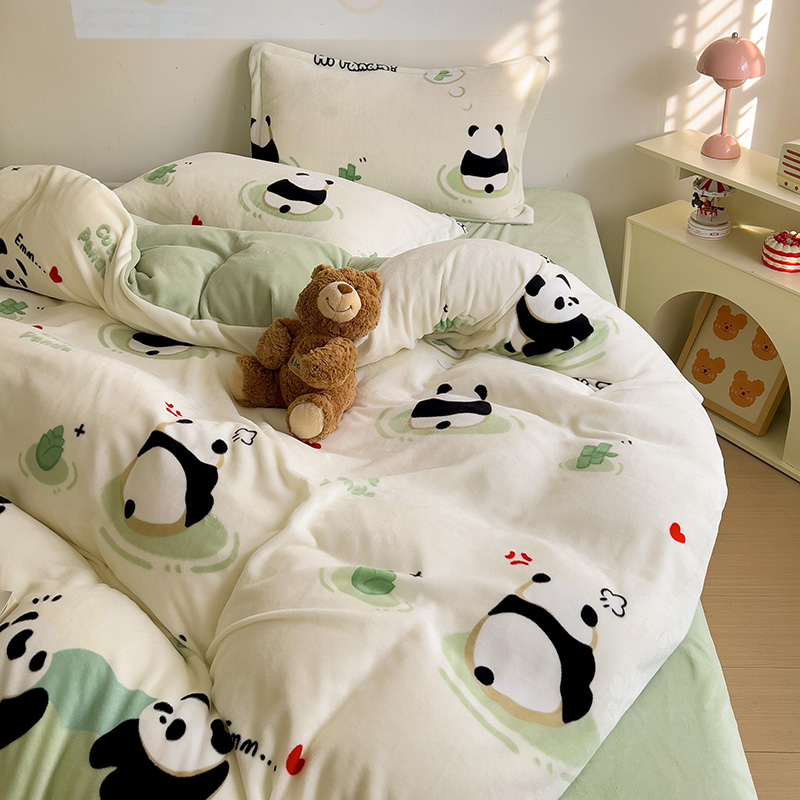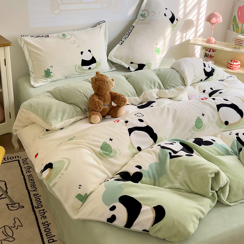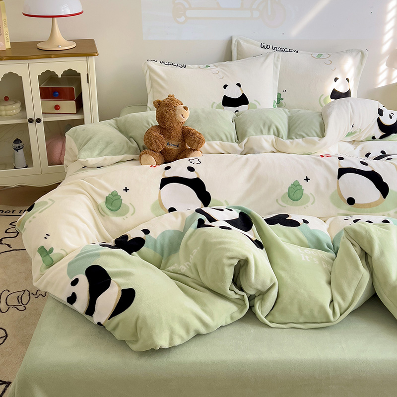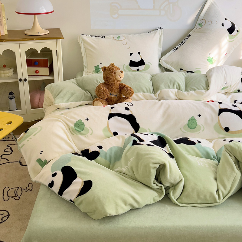 乐童家纺 2024新款跑量款牛奶绒床裙四件套 熊猫之家