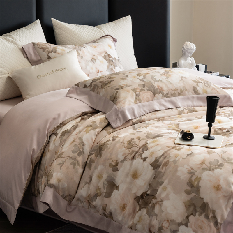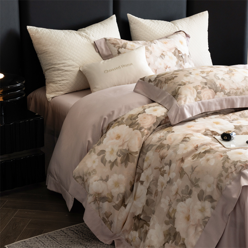 初拾 2024新款60s天丝棉磨毛数码印花四件套 满庭芳-初秋