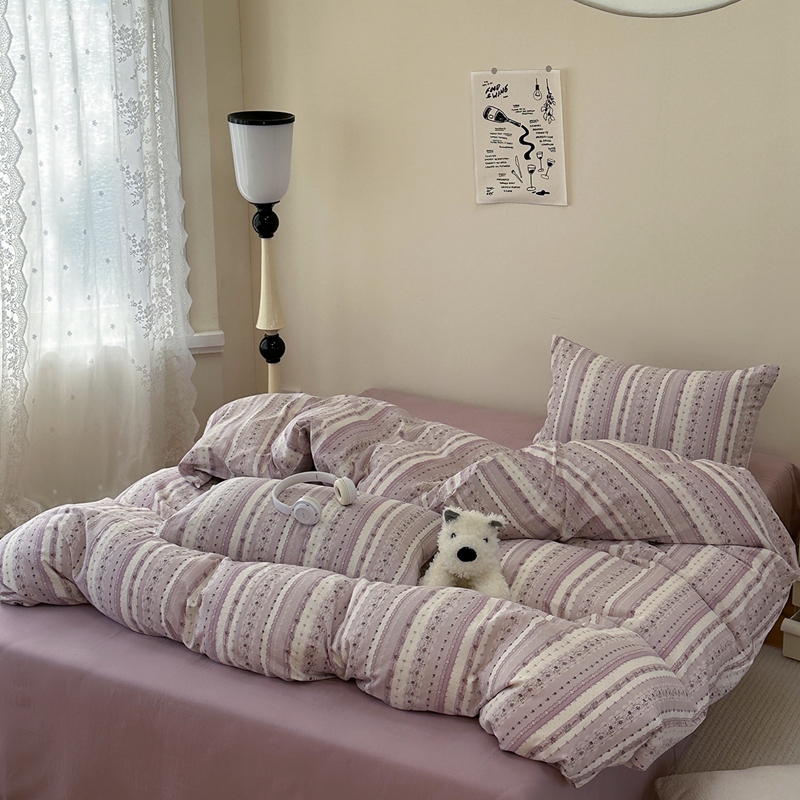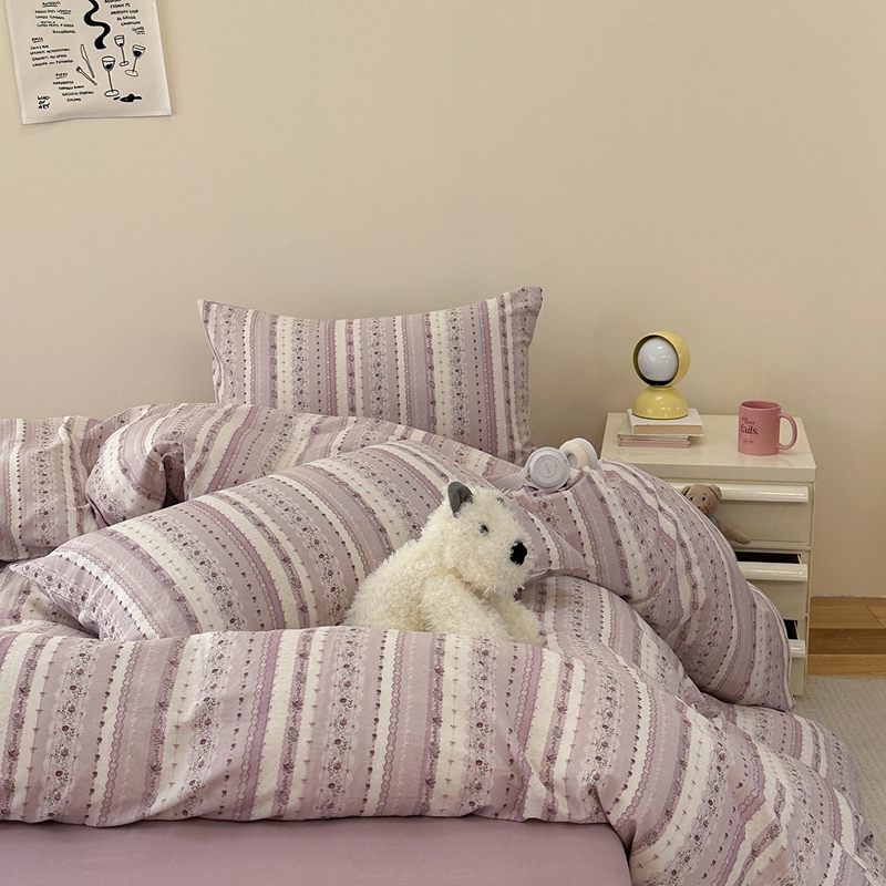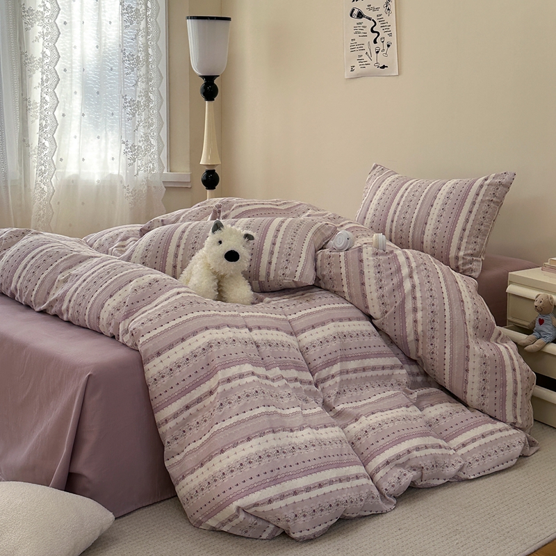 洋铭区(原狠狠爱) 2024新款无边全棉双层纱四件套 风铃紫
