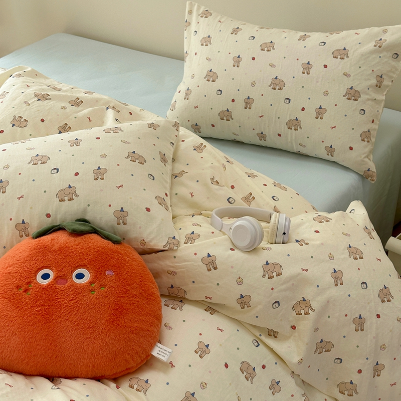 洋铭区(原狠狠爱) 2024新款无边全棉双层纱四件套 小灰象