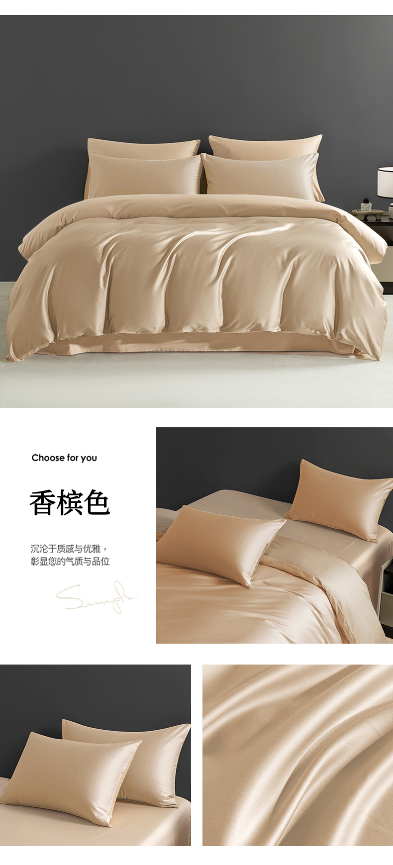 淳绵家居 2024新款50*50S长绒棉纯色定制四件套特殊尺寸一件可定被套枕套床单床笠-孚星 香槟色+香槟色