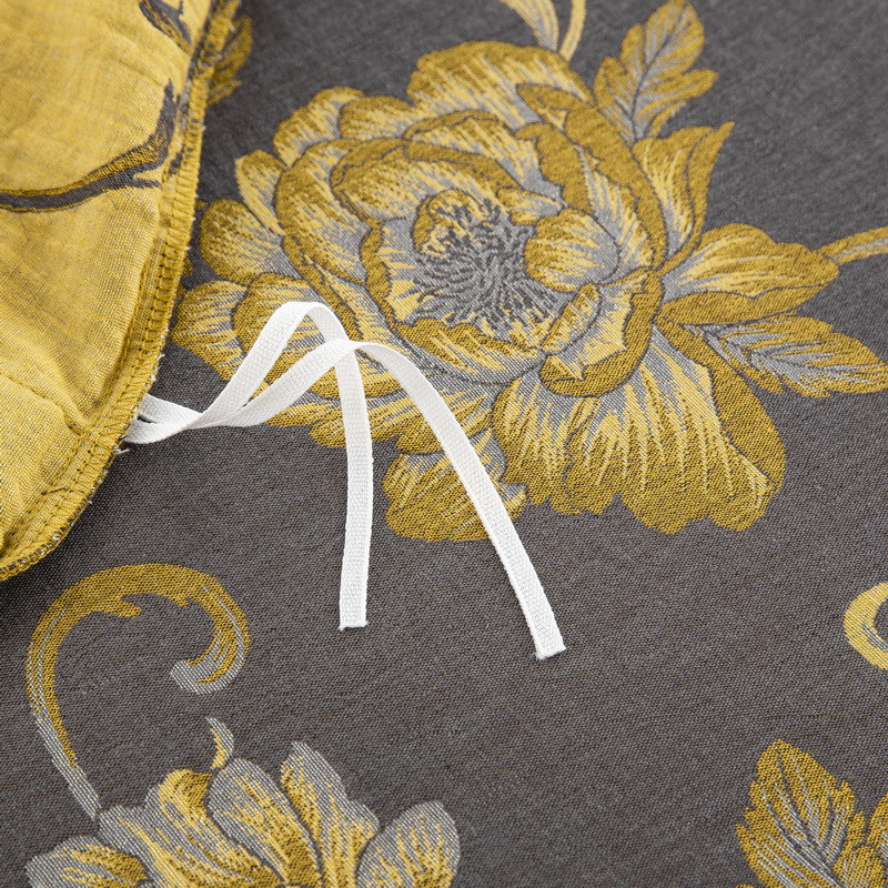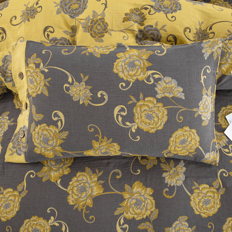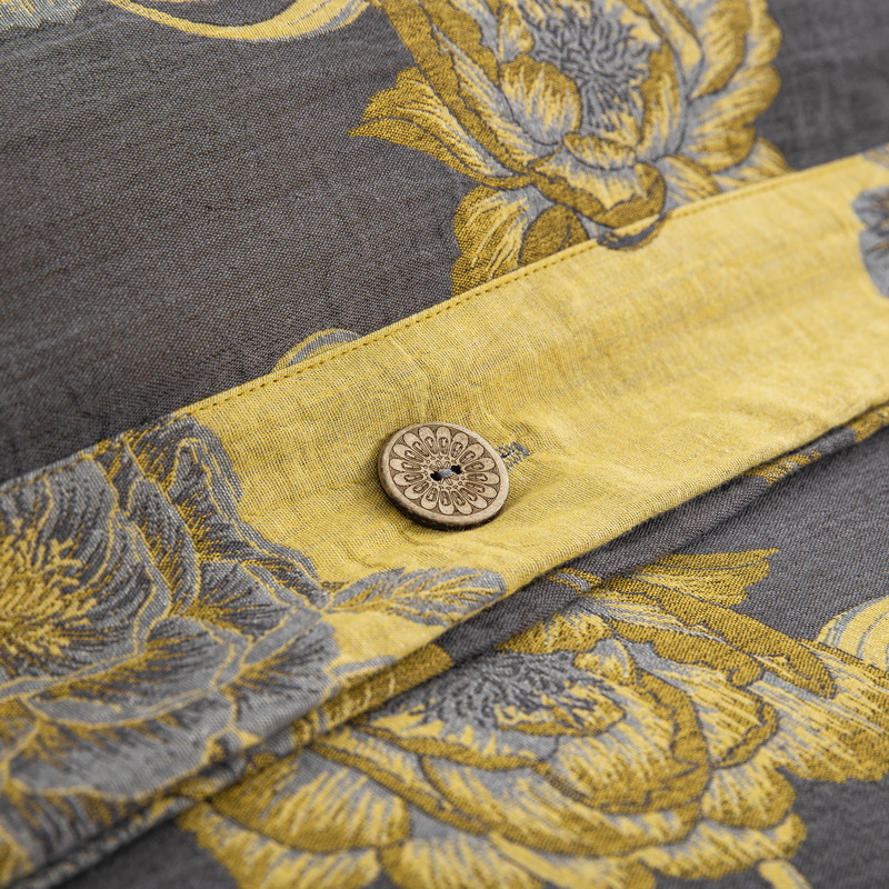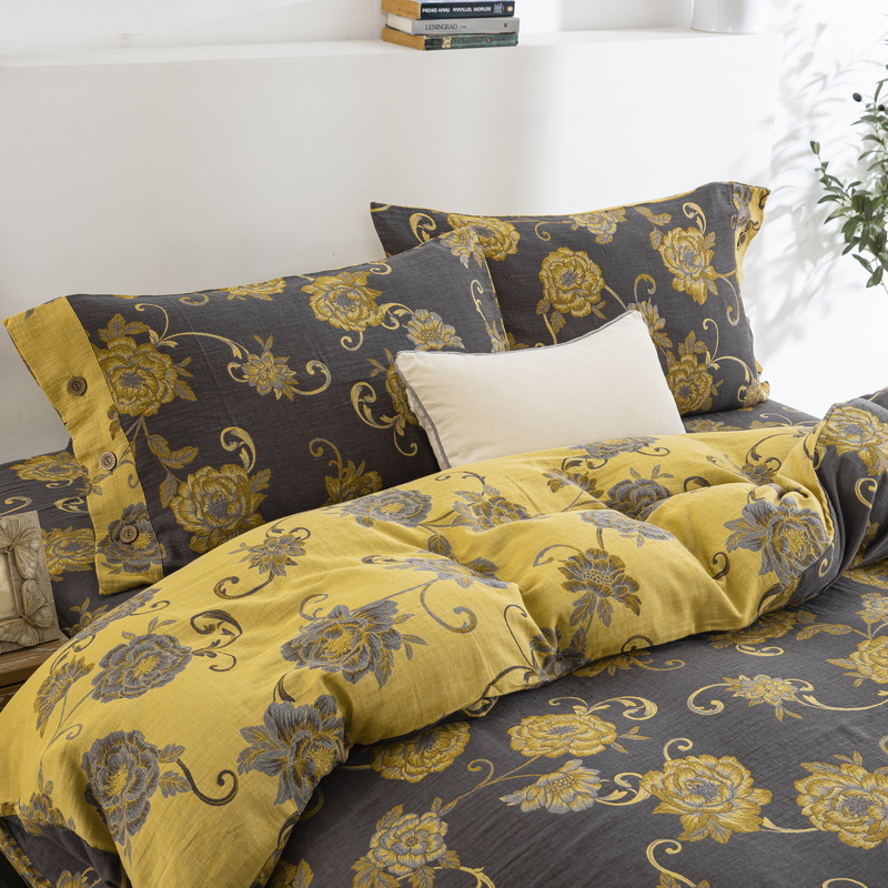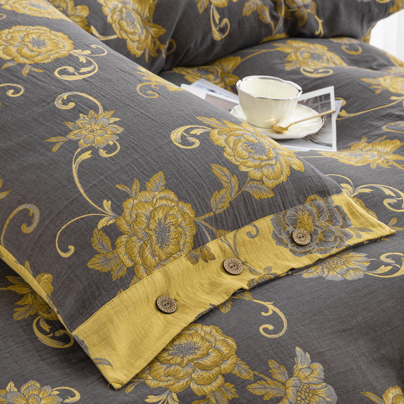 商品名称:鲁爱 2025新款全棉色织双层纱纽扣款四件套 一路生花-黑金