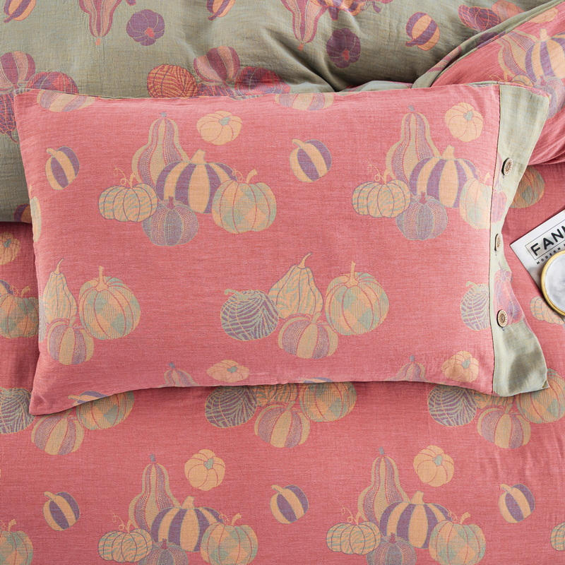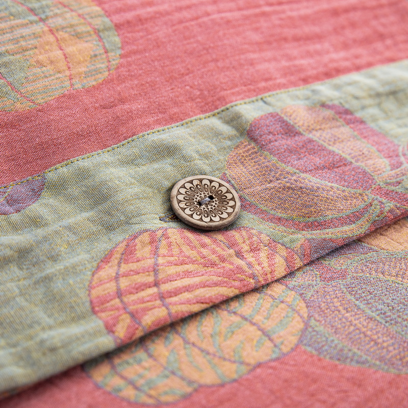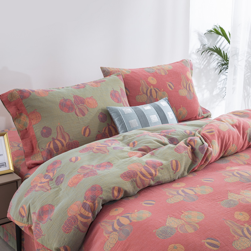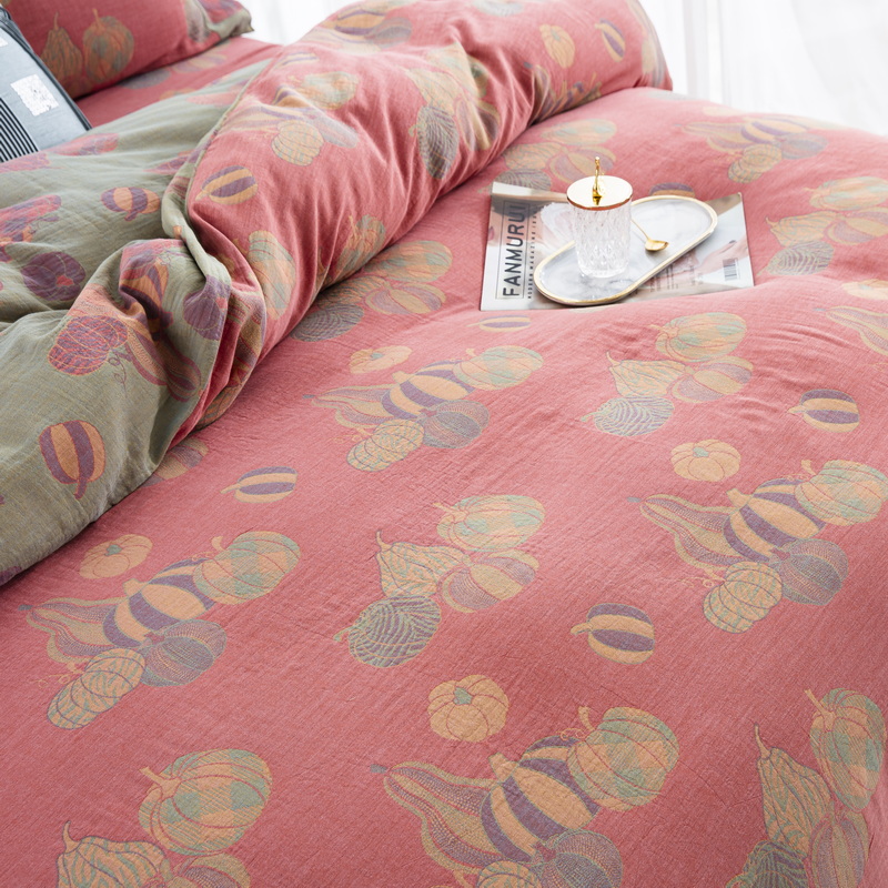商品名称:鲁爱 2025新款全棉色织双层纱纽扣款四件套 子孙满堂-粉