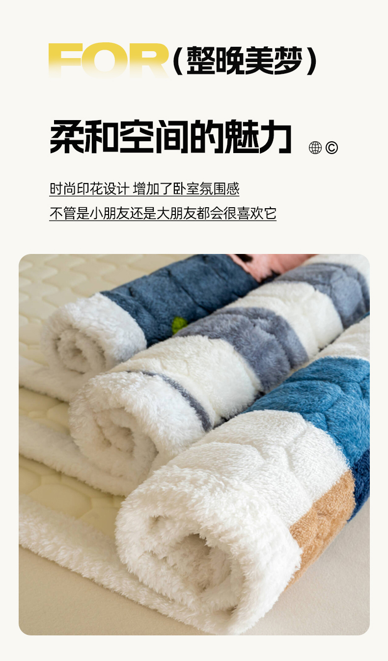 商品名称:花言狐语 2025新款北极绒保暖夹棉加厚床褥-大床 可爱煤球