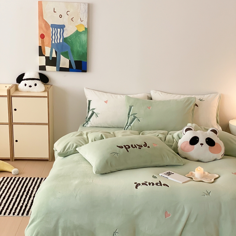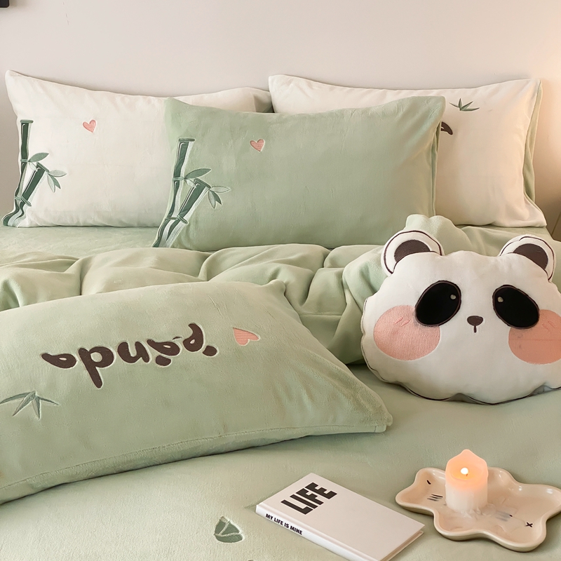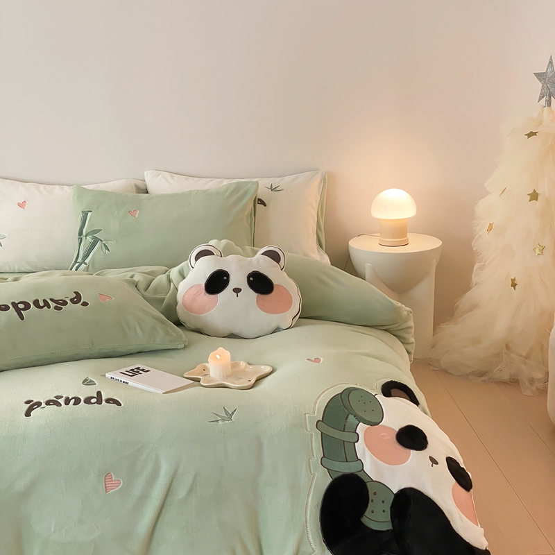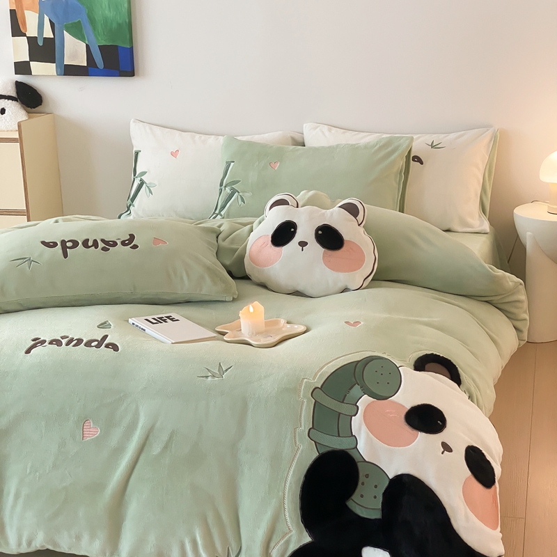 朗莎家纺 2024新款230g高克重贴布绣牛奶绒四件套 喜宝熊猫