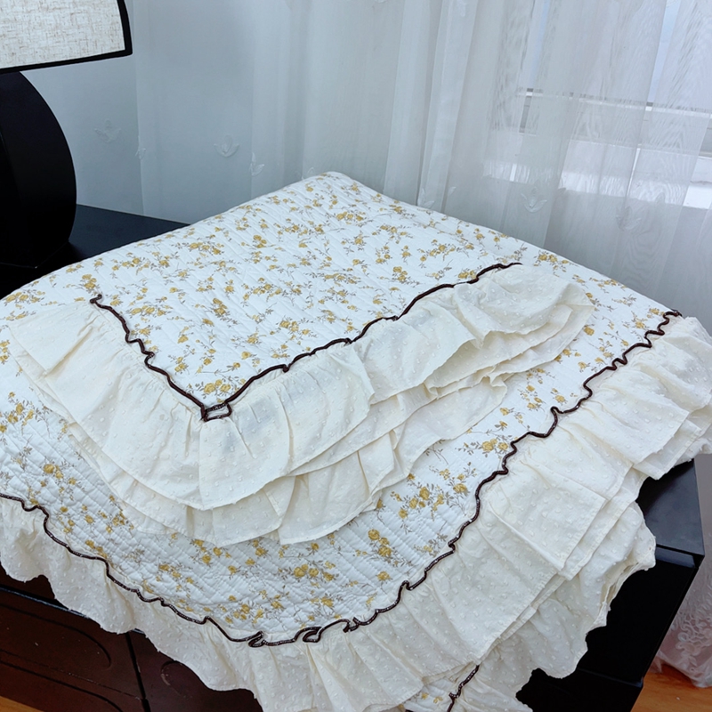 暖居 2024新款韩系高温砂洗棉花泡泡花边款床盖三件套绗缝加棉防滑床单 丽芙