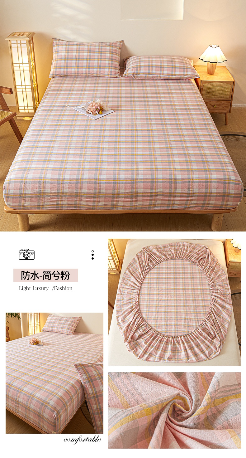 芬晴家纺 2024新款全棉色织防水床笠大床款 防水-简兮粉
