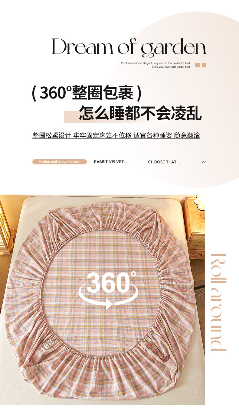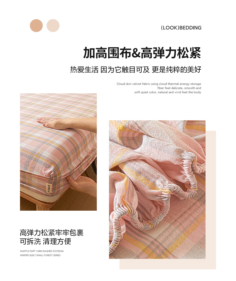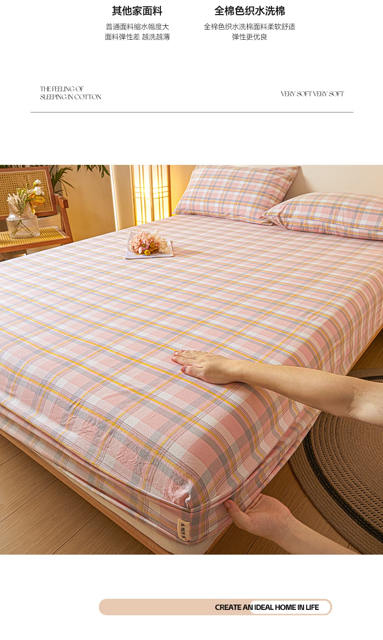 (总)芬晴家纺 2025新款色织全棉棉花床笠,本色,经典格,诺卡,清风-粉,清风-灰,清风-兰,日常