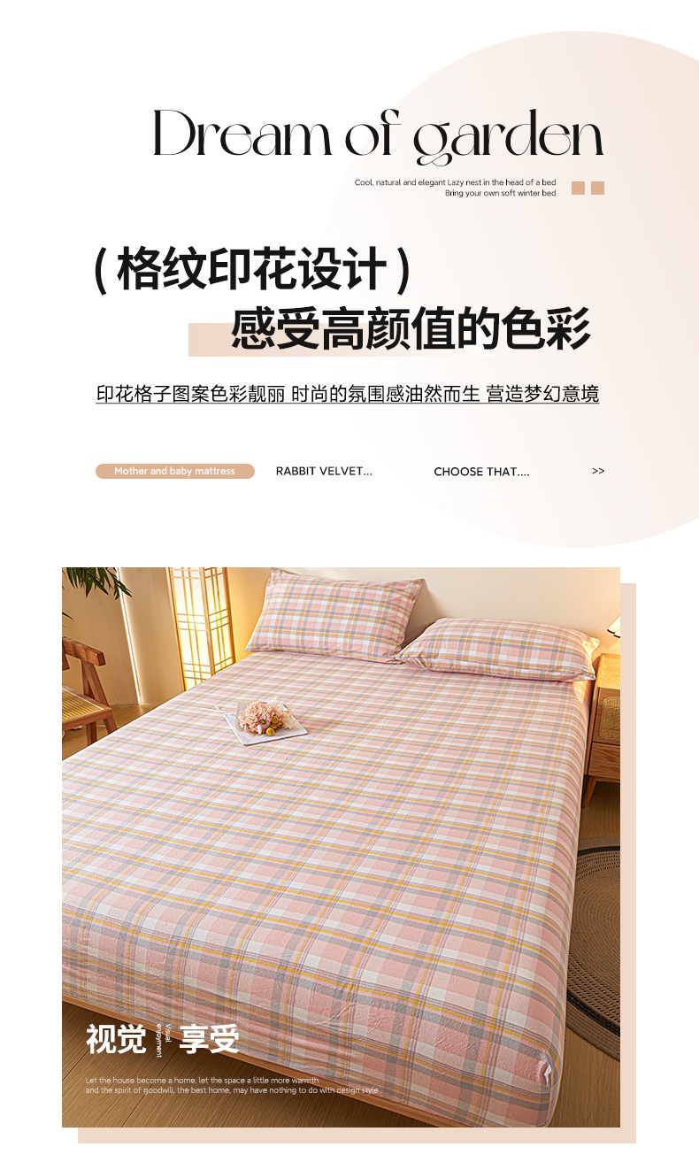 • 91家纺网 家纺一手货源 找家纺 芬晴家纺 2024新款全棉色织防水床笠大床款 防水-简兮粉