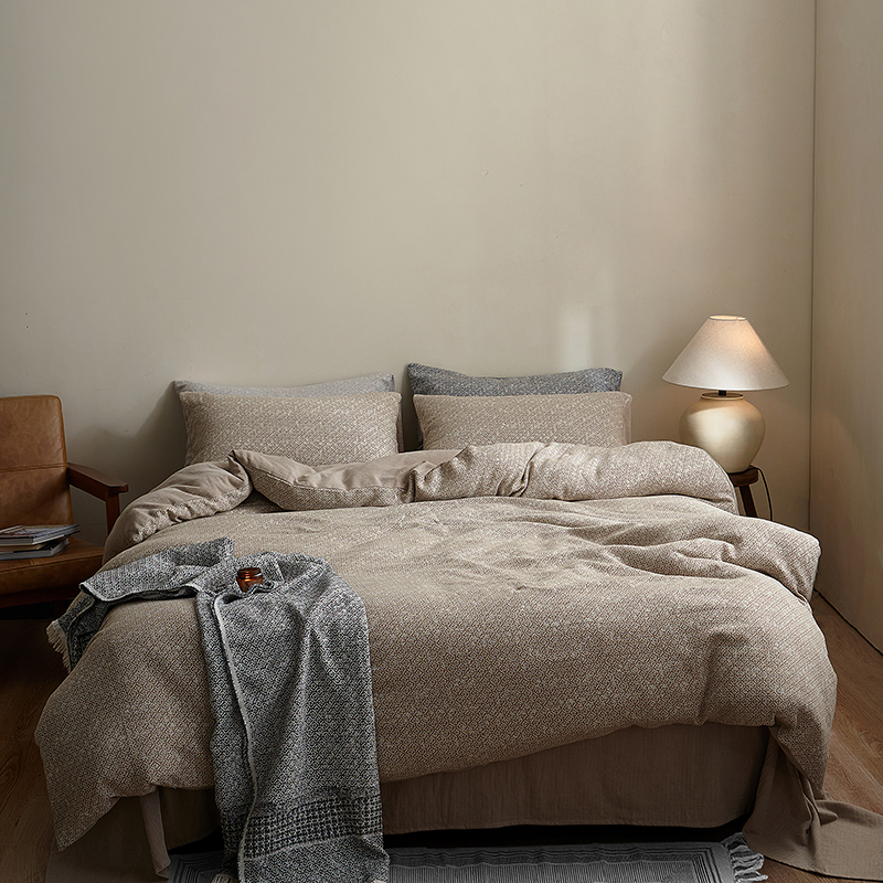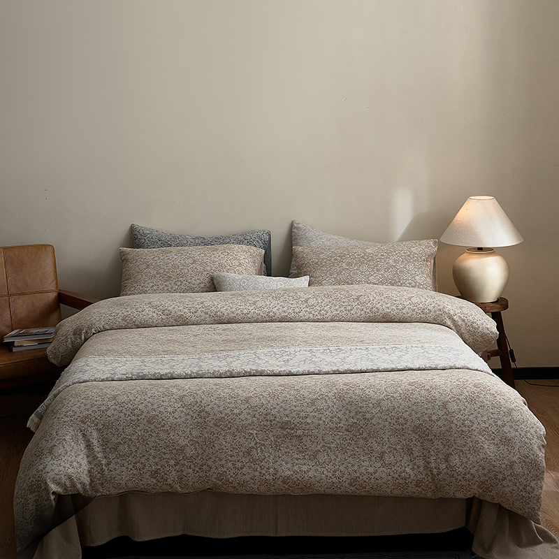 (总)子和家居 2025新款全棉麻感棉花朵款四件套-场景1,麻感棉花朵款四件套