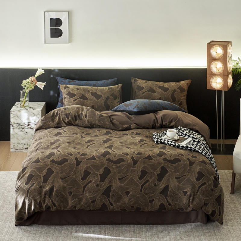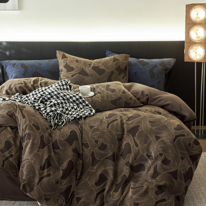 (总)简家居2025新款40支全棉色织空气棉四件套-鎏金喜韵,鎏金喜韵