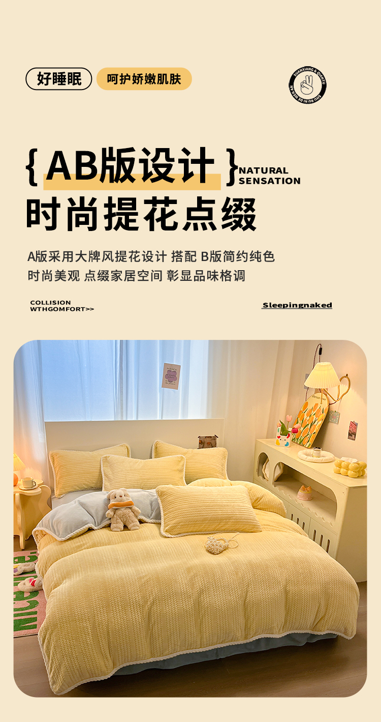 当前位置: 91家纺网 > 商品网购 > 床品套件 > 四件套 > 牛奶绒四件套 > (买家秀 爆款不断货)A类母婴级6D提花牛奶绒四件套提花绒珊瑚绒四件套雪花绒四件套纯色牛奶绒四件套花 提花-奶黄灰