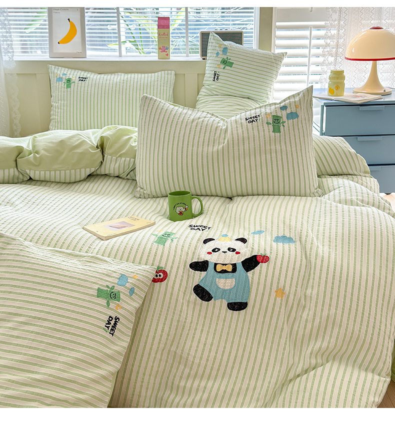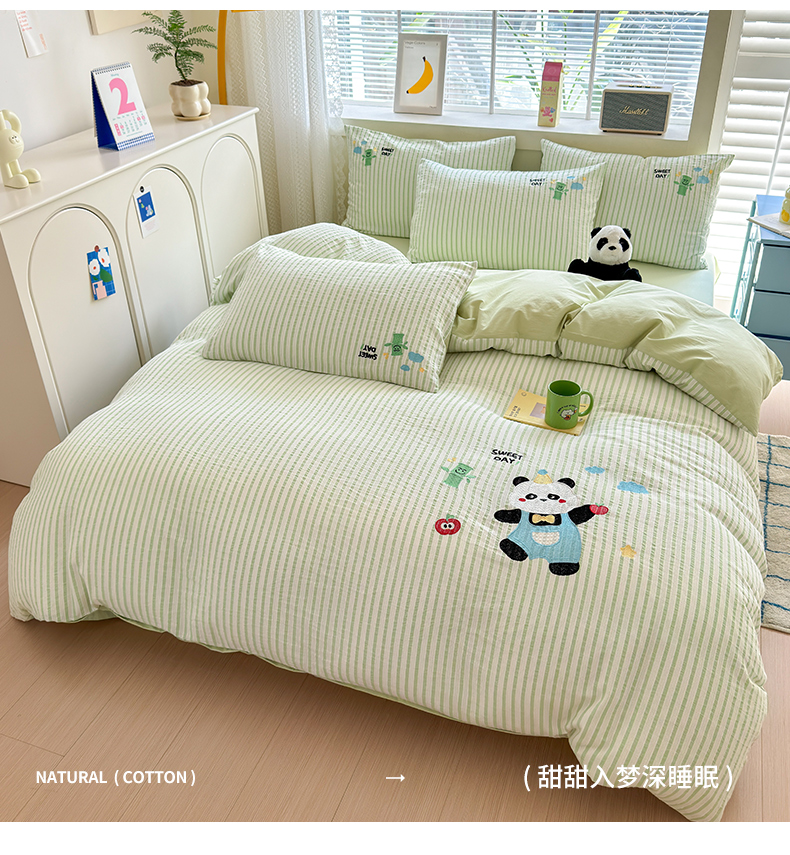 当前位置: 91家纺网 > 商品网购 > 床品套件 > 四件套 > 全棉普通四件套 > (买家秀 热款花型 不断货)母婴级A类ins风水洗棉四件套水洗棉毛巾绣四件套水洗棉床笠四件套提花绣花 开心熊猫
