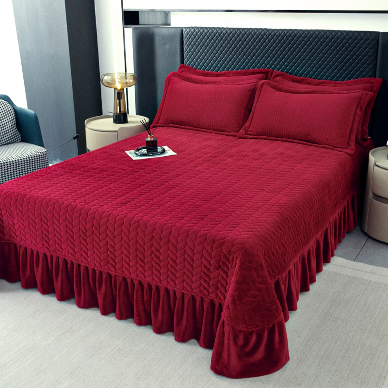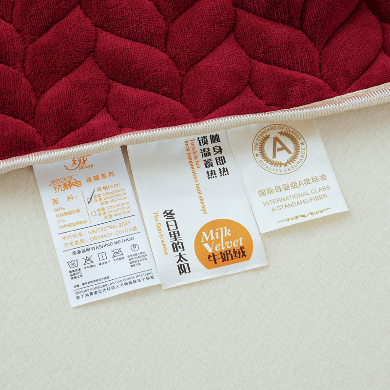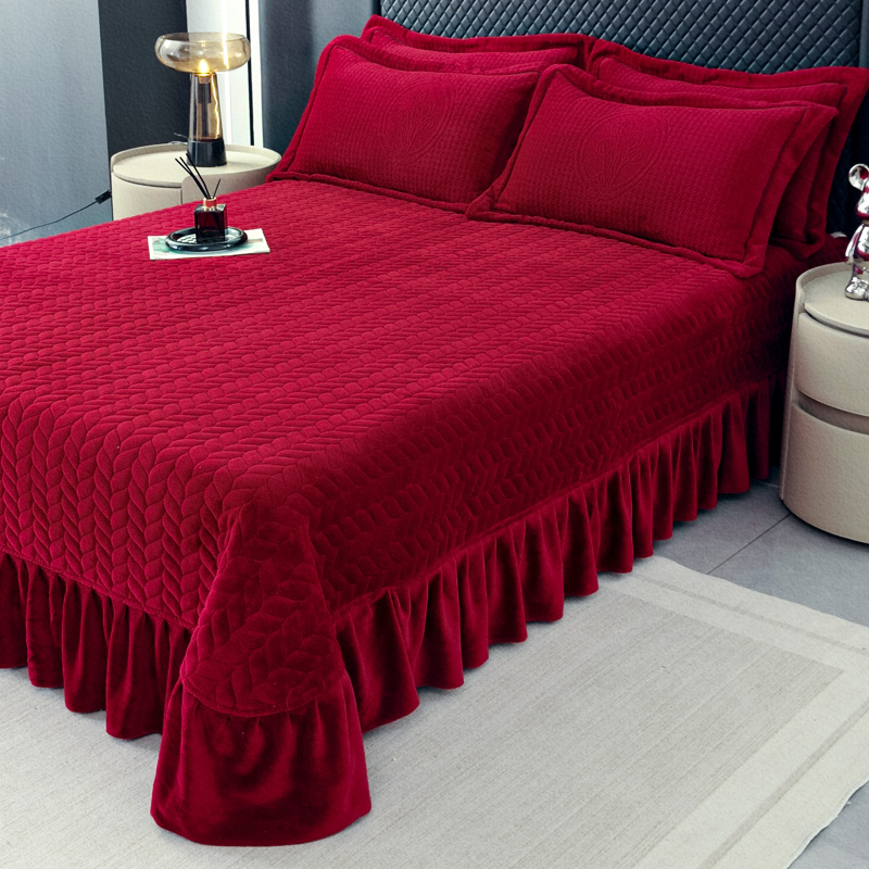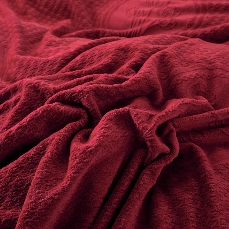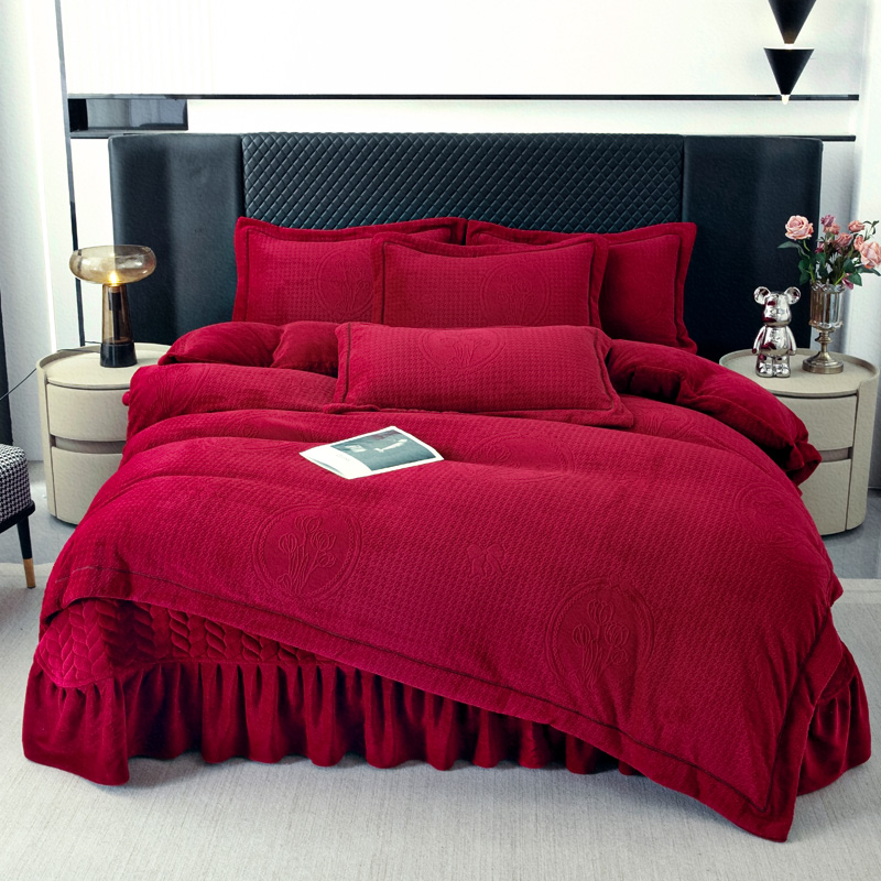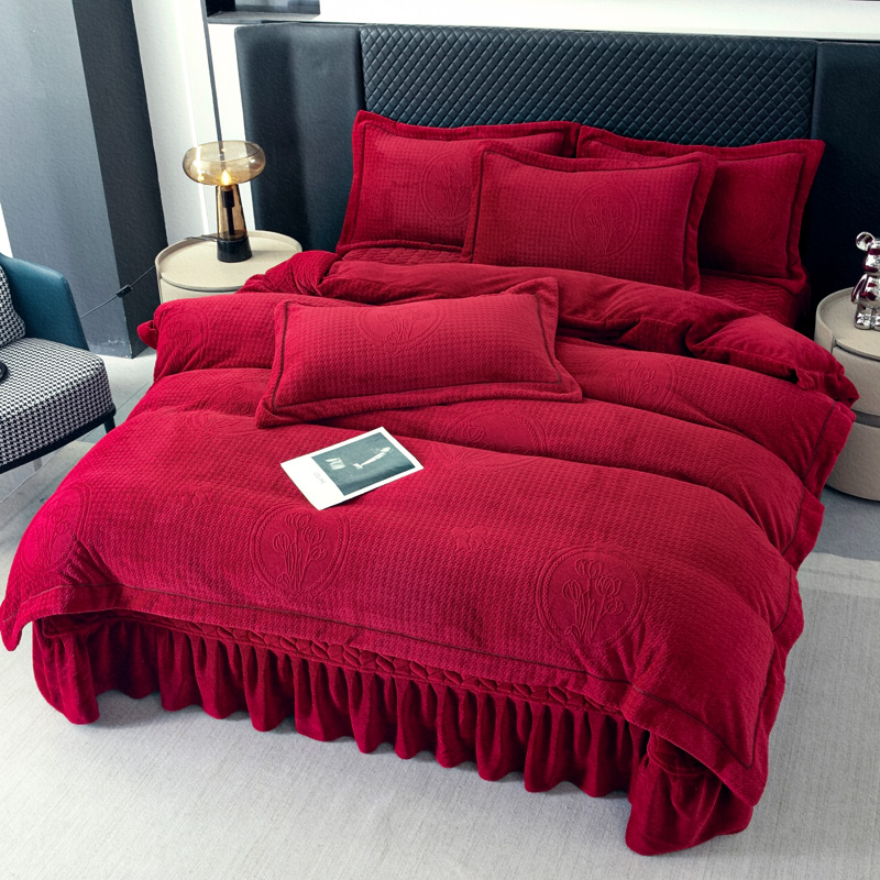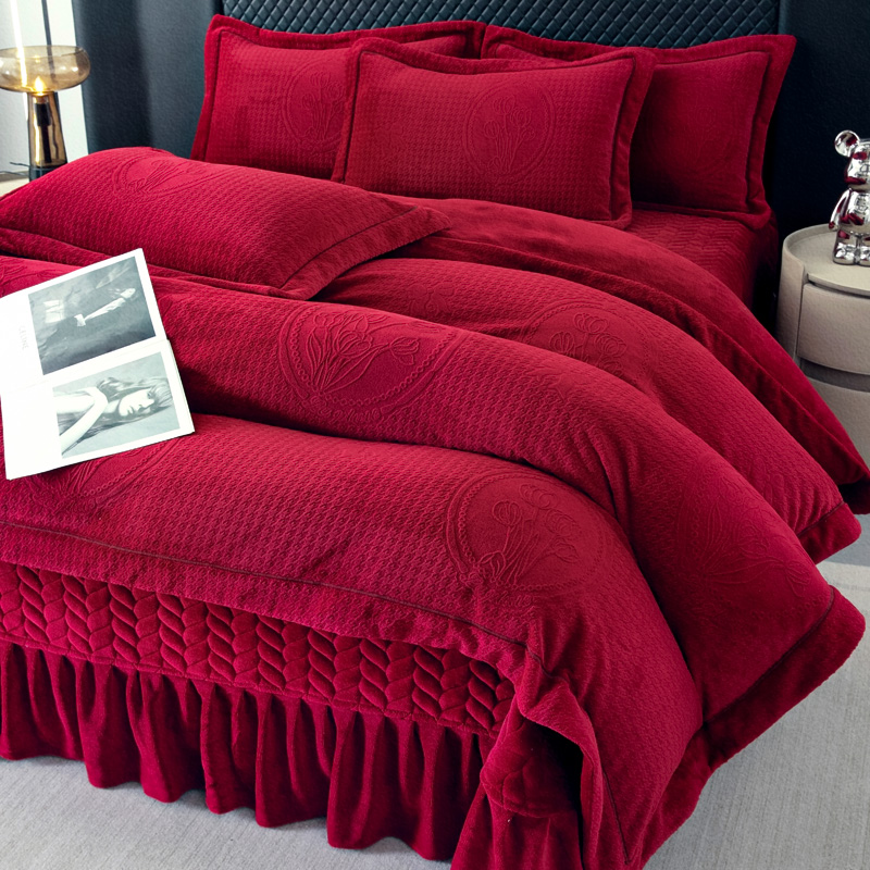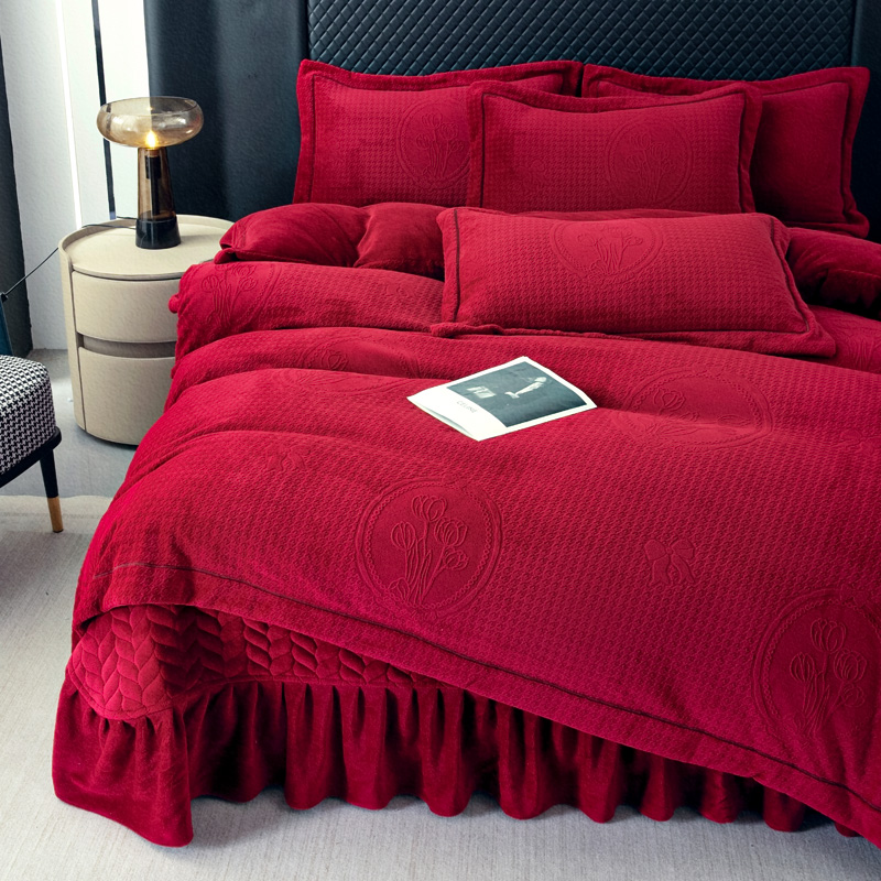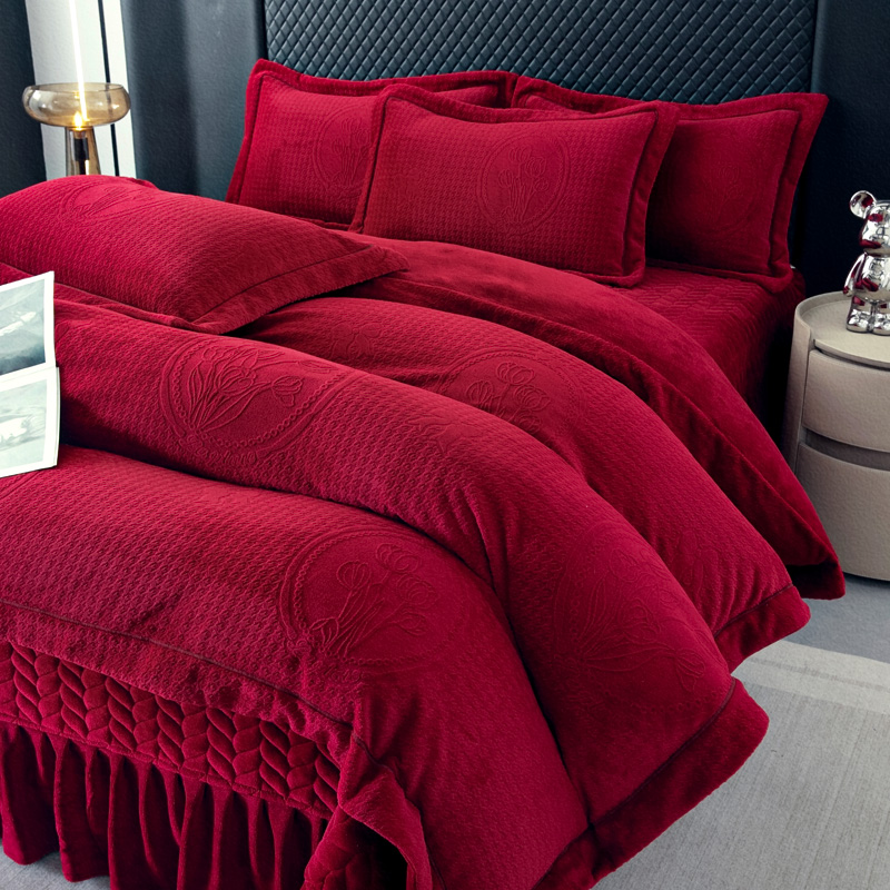 商品名称:畅畅家纺 2025新款12斤加厚冬季轻奢款230克全消光立体雕花牛奶绒夹棉床盖四件套 轻奢花语-红色