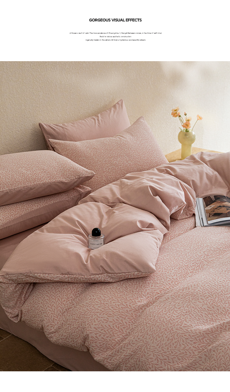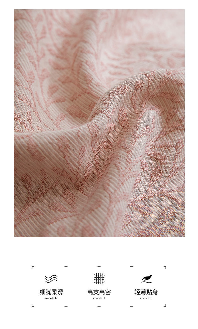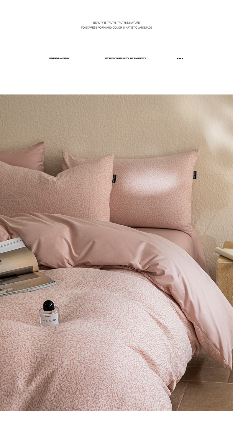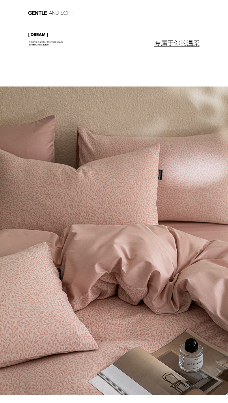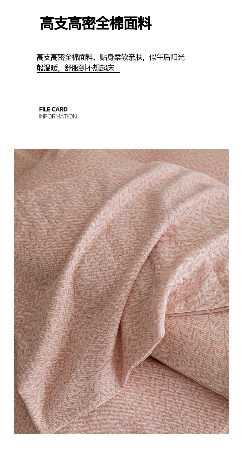 商品名称:2025新款全棉A类三层纱大提花纯棉四件套 翠枝玉露-粉