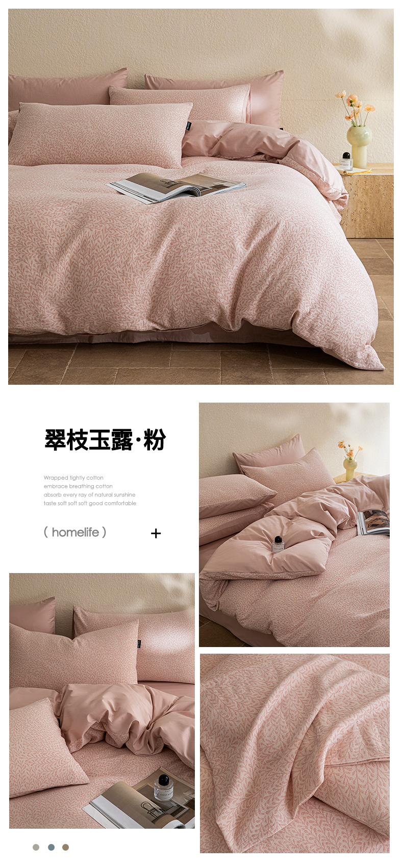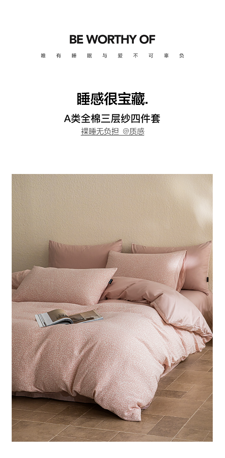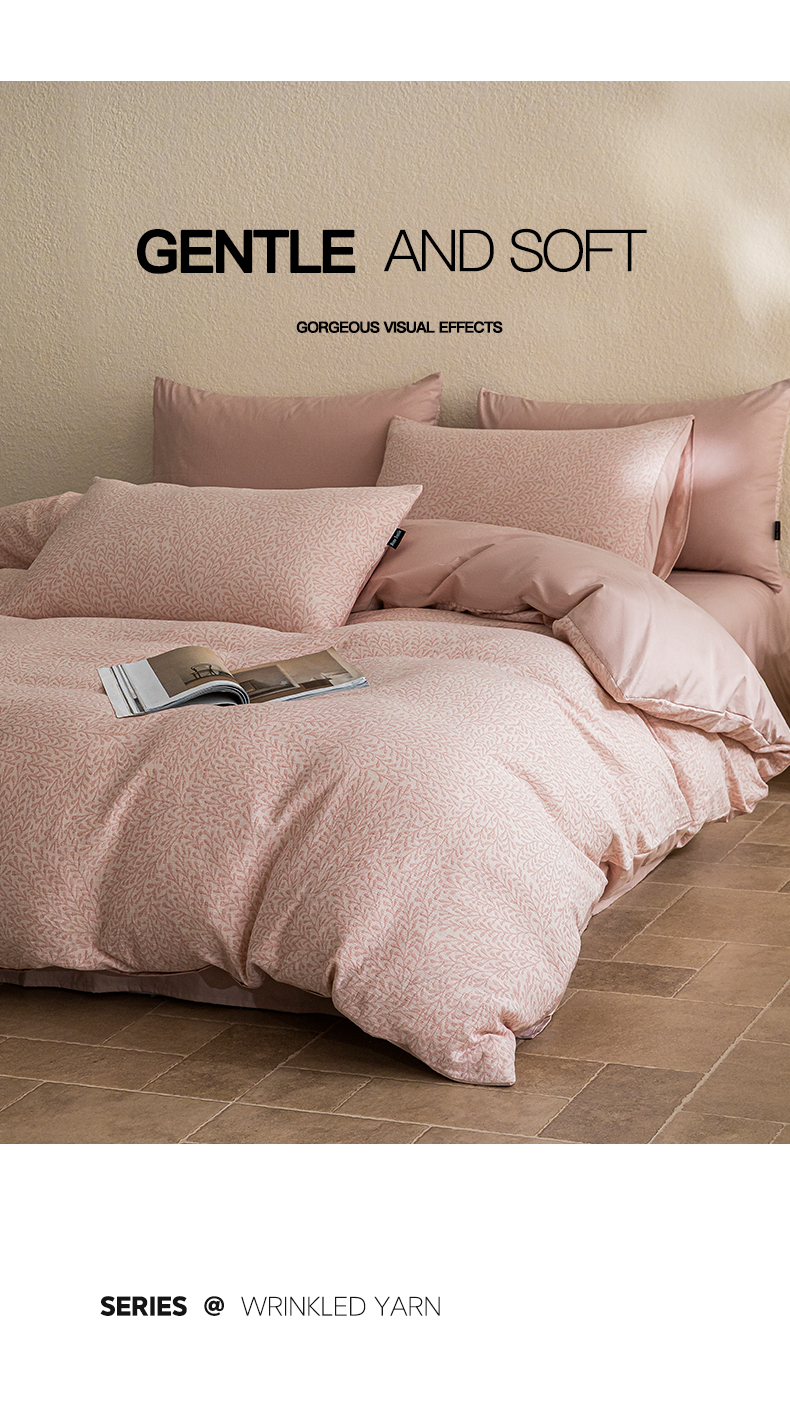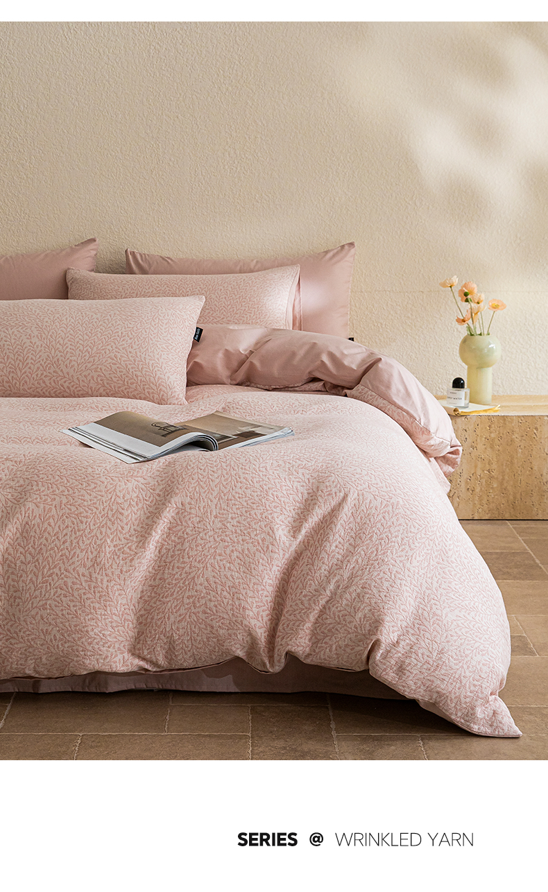 商品名称:2025新款全棉A类三层纱大提花纯棉四件套 翠枝玉露-粉