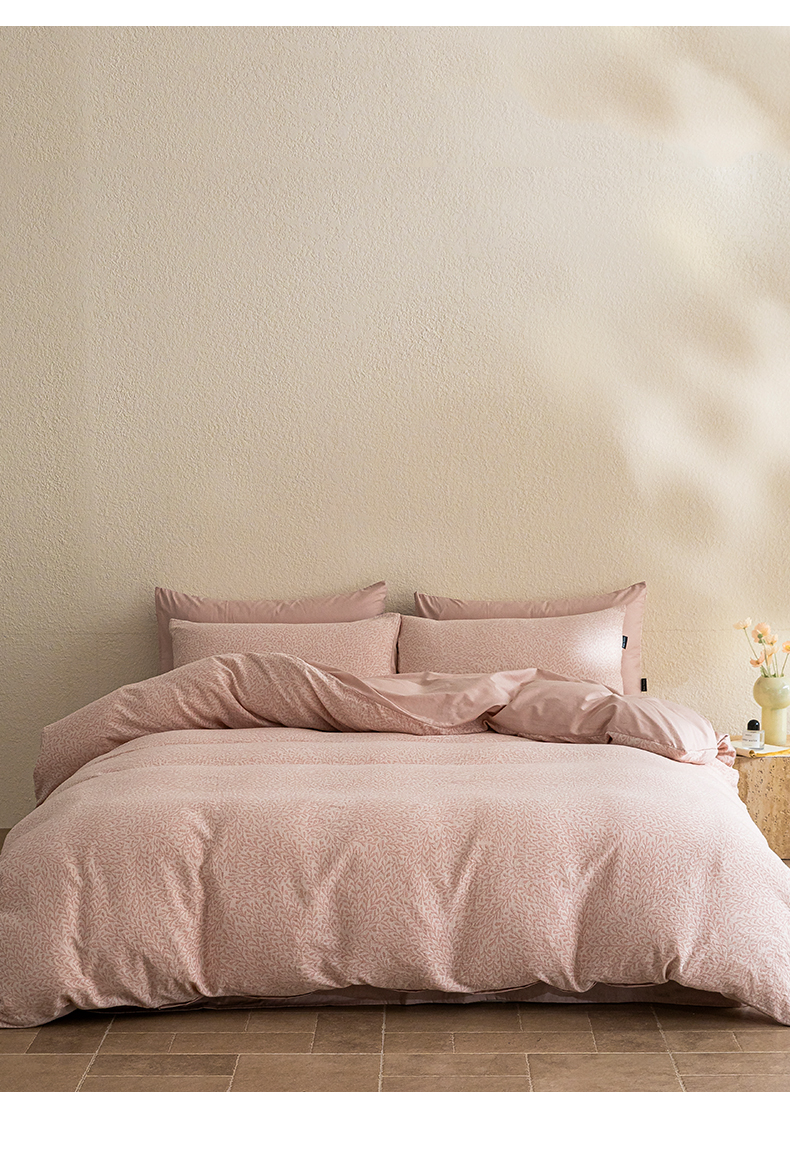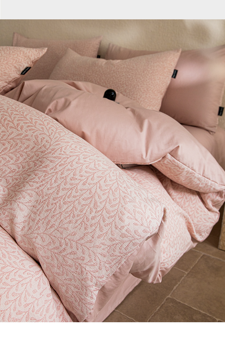2025新款全棉A类三层纱大提花纯棉四件套 翠枝玉露-粉
