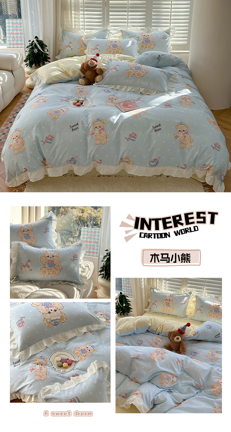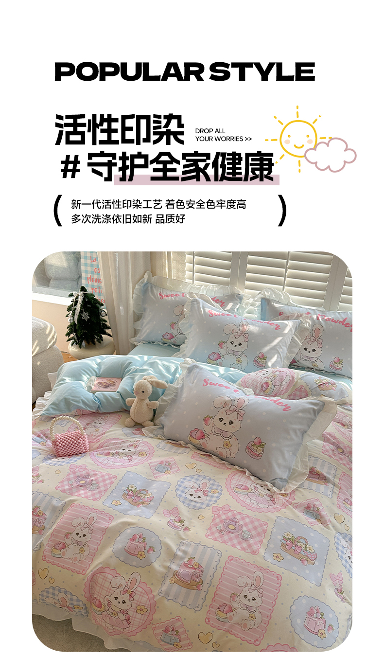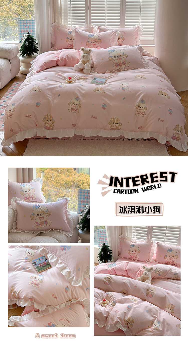 (总)美乐迪家纺 2024新款全棉印花混搭系列四件套,波点小猫,花园小狗,可爱兔,可乐汉堡,奶油狗,甜心小熊,童趣,小熊猫