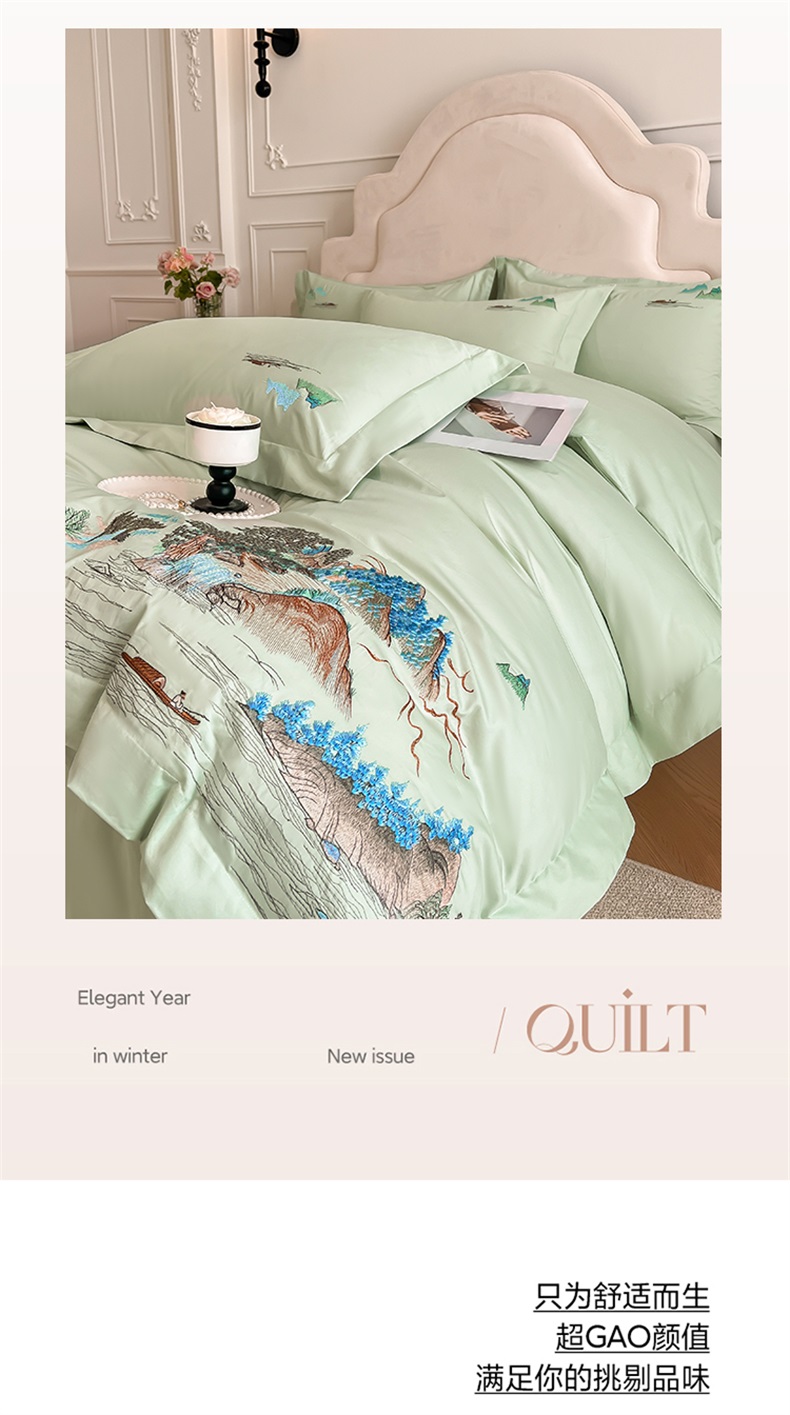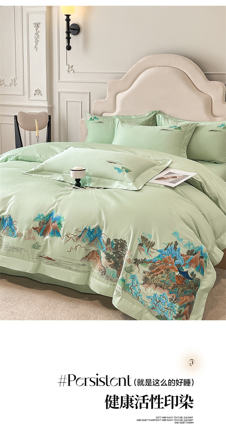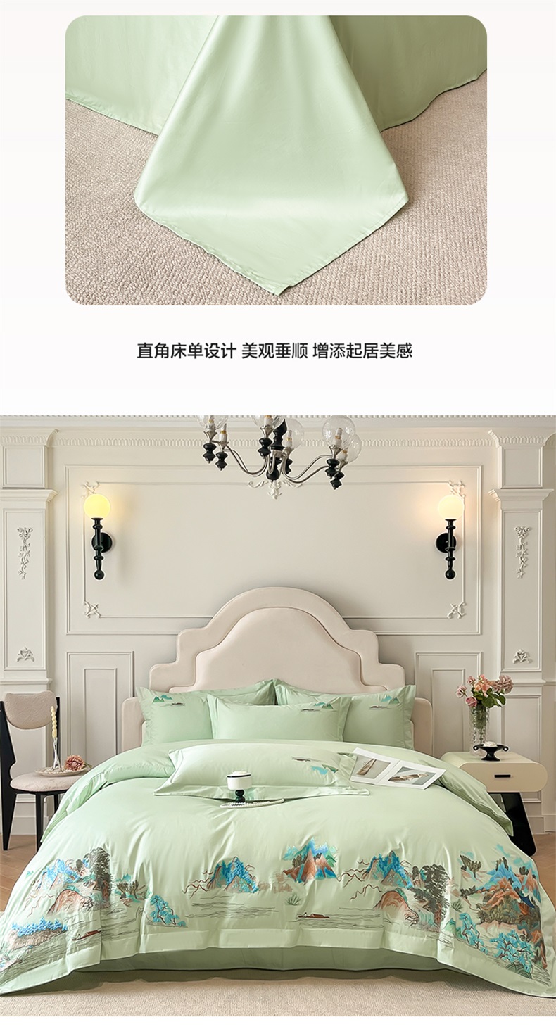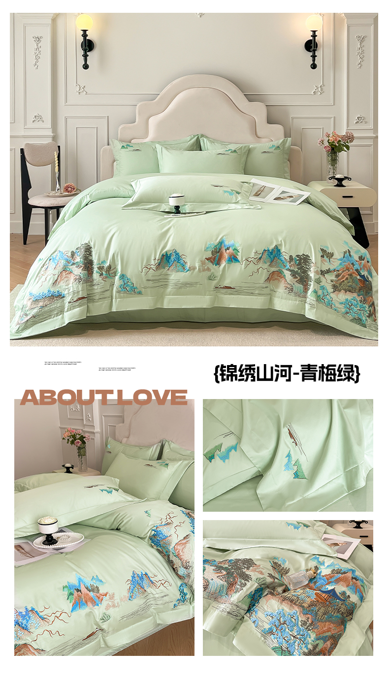 商品名称:帝王家纺 2025新款亲肤棉磨毛重工绣花四件套-锦绣山河 锦绣山河-青梅绿