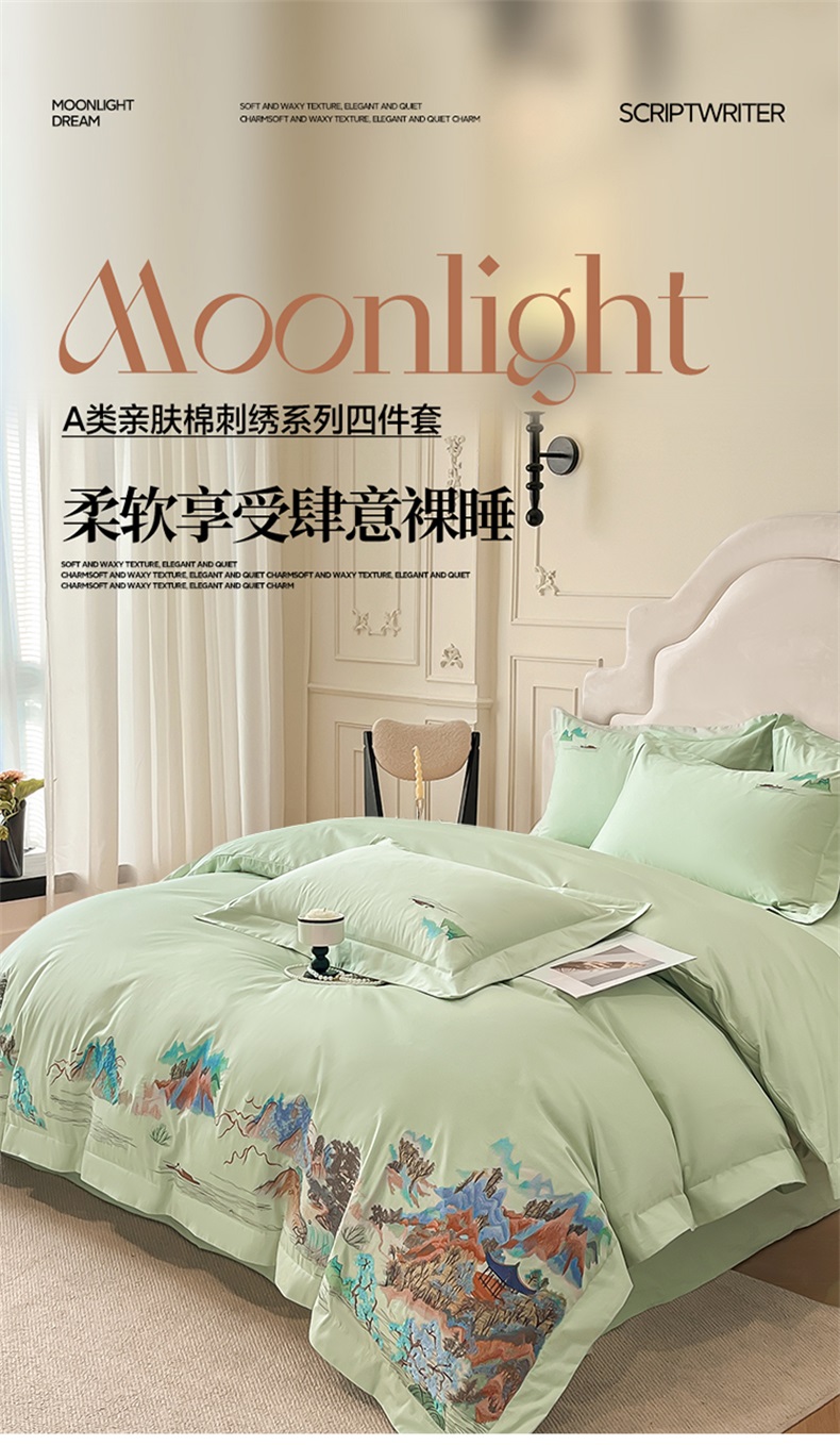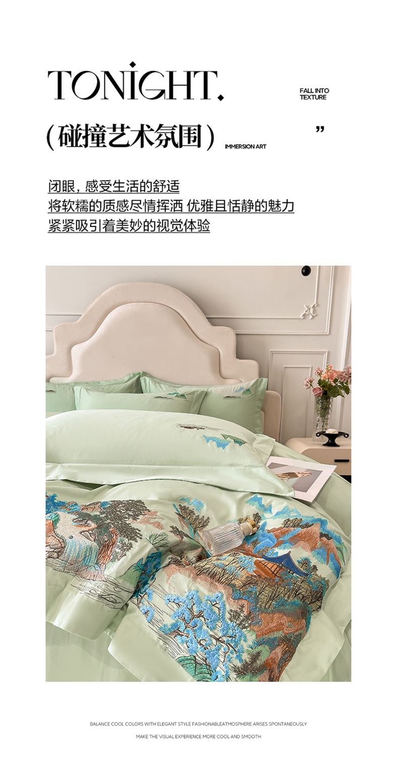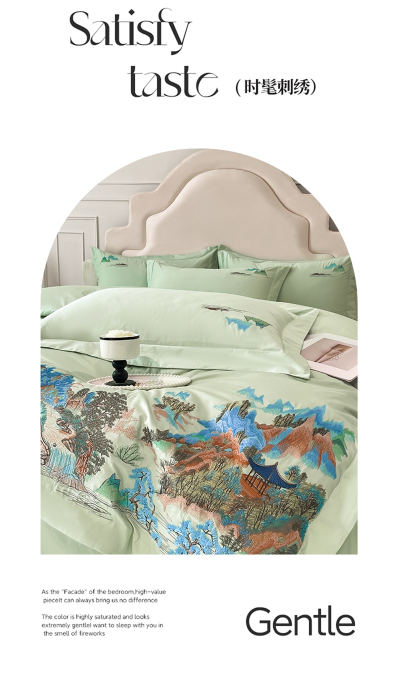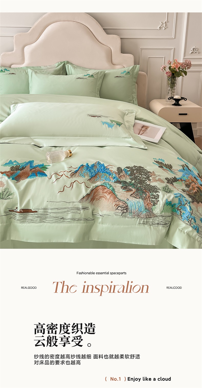 商品名称:帝王家纺 2025新款亲肤棉磨毛重工绣花四件套-锦绣山河 锦绣山河-青梅绿
