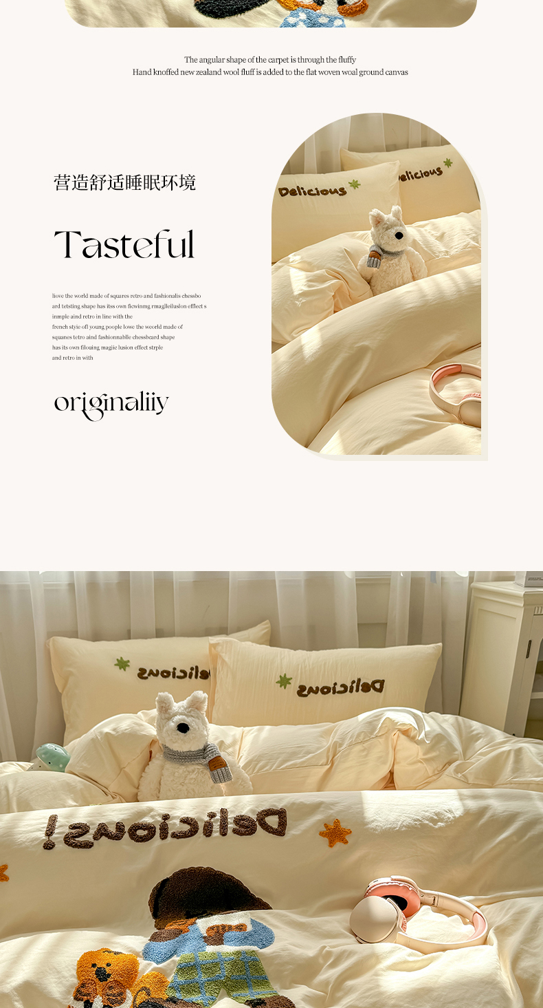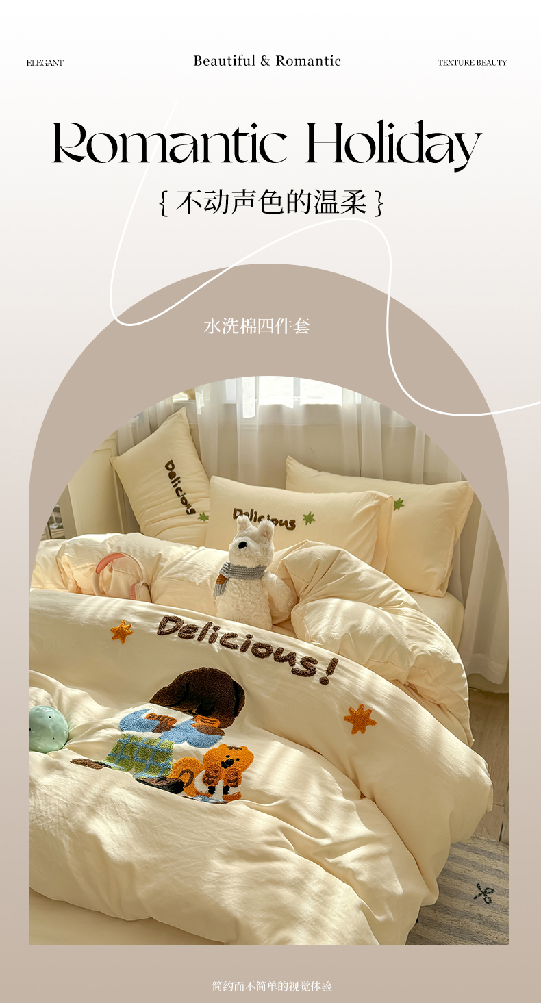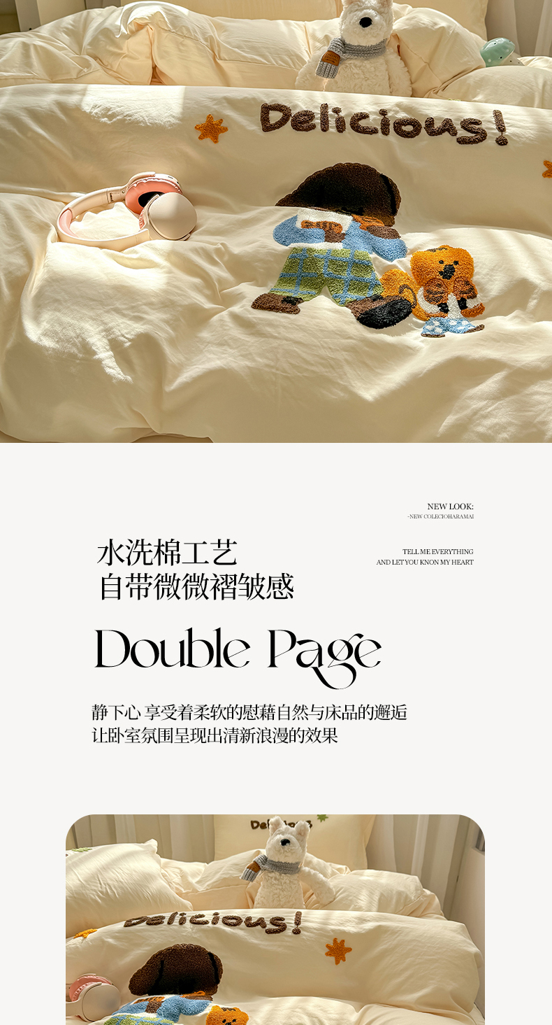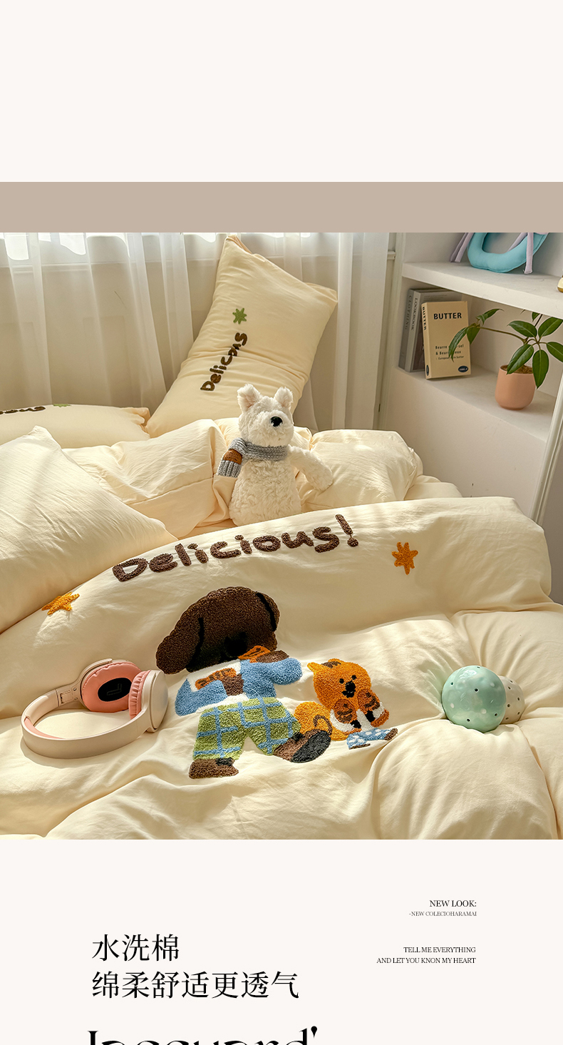 当前位置: 91家纺网 > 商品网购 > 床品套件 > 四件套 > 水洗棉四件套 > 韩巢家纺 2025新款大版水洗棉毛巾绣被套四件套(提供卖家秀) 贪吃小狗
