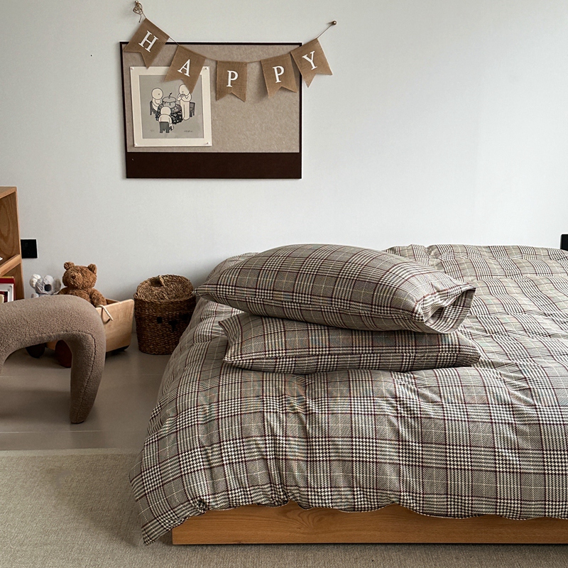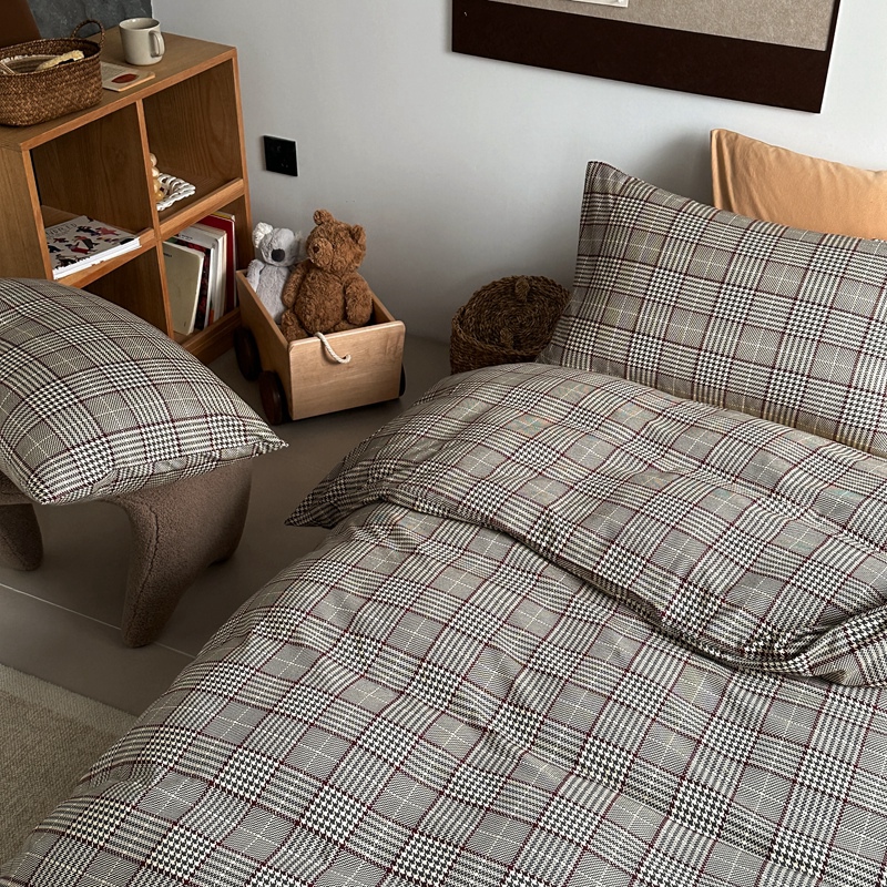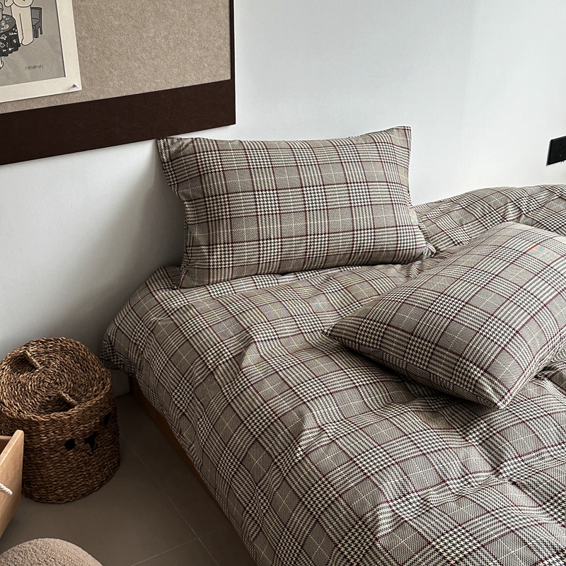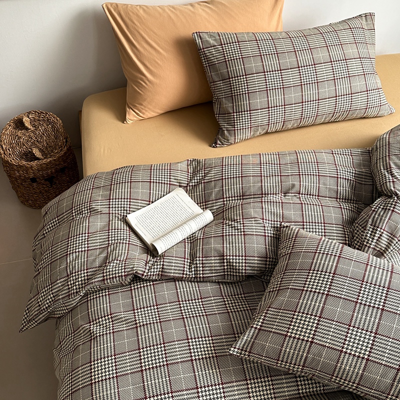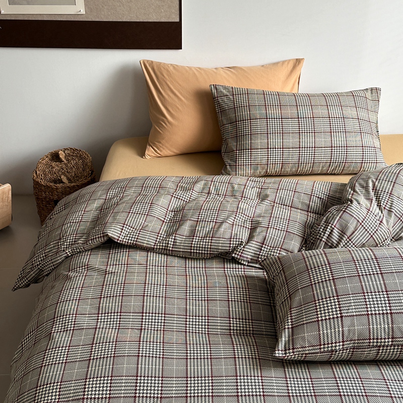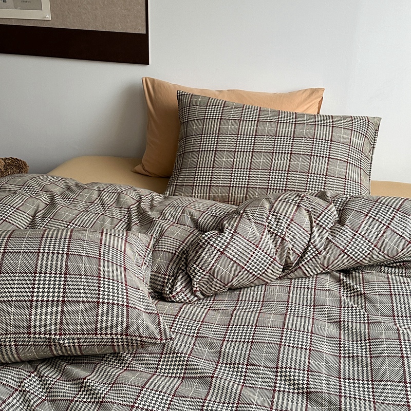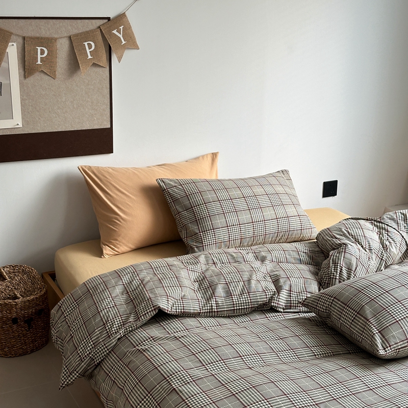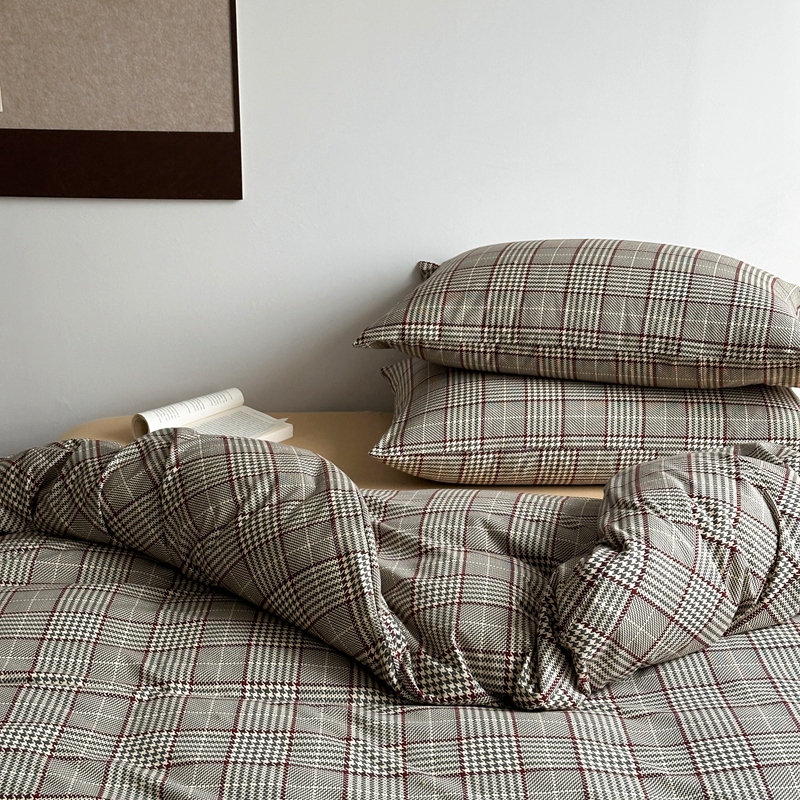 梦可莱家居 2025新款全棉针织四件套【加大系列】 千鸟格