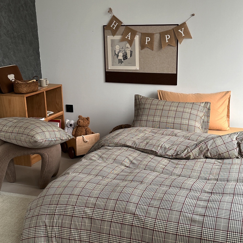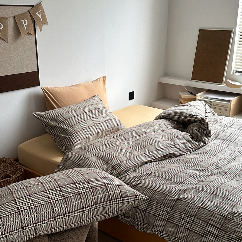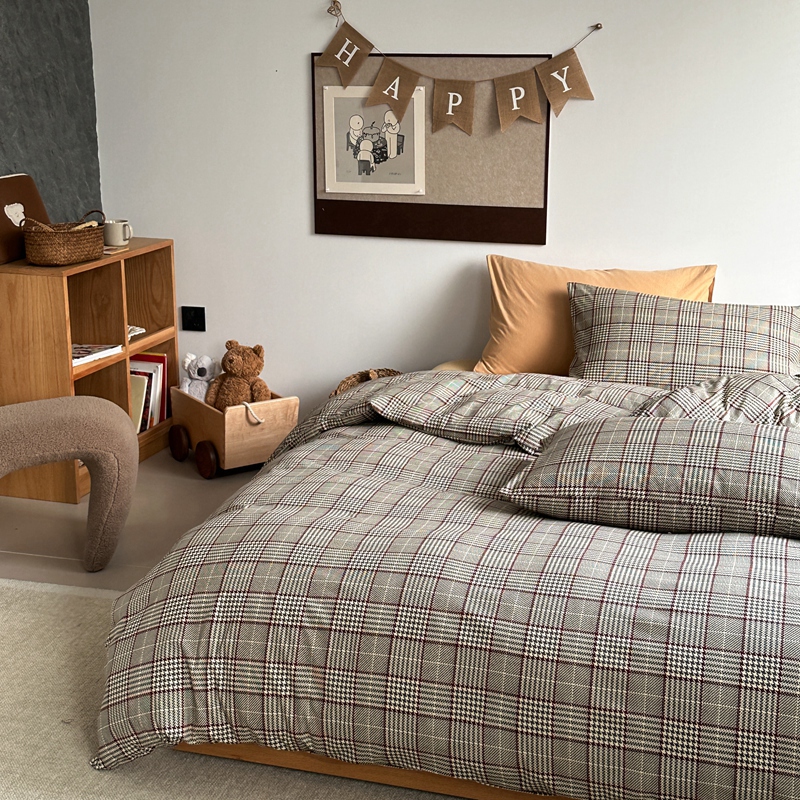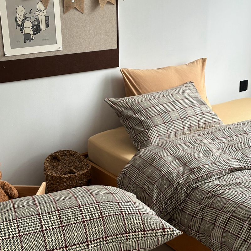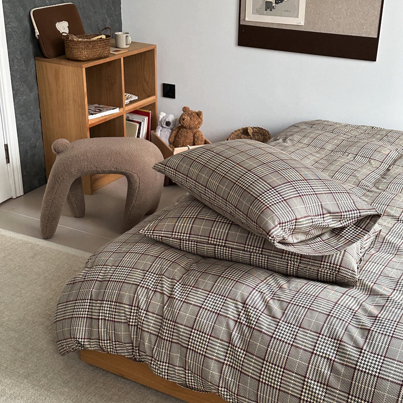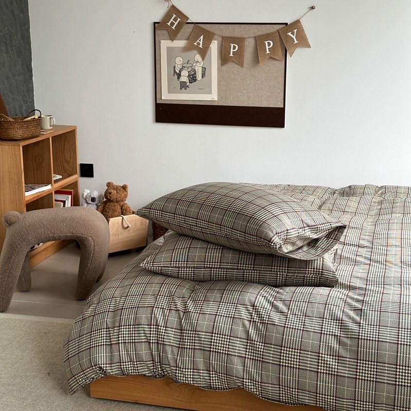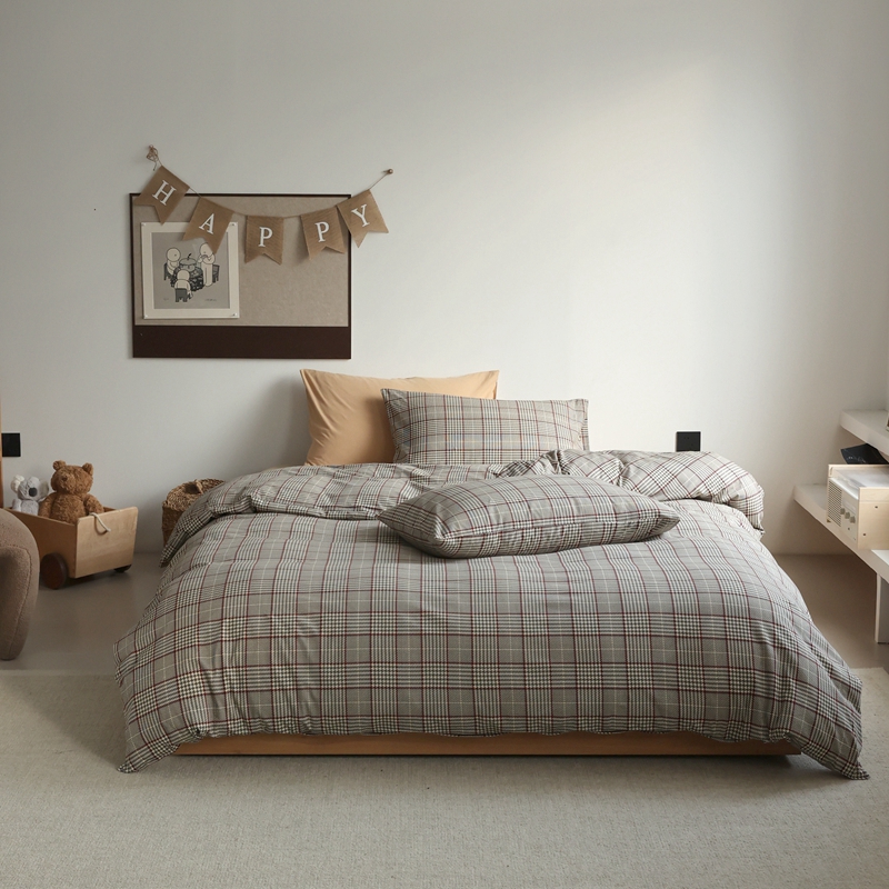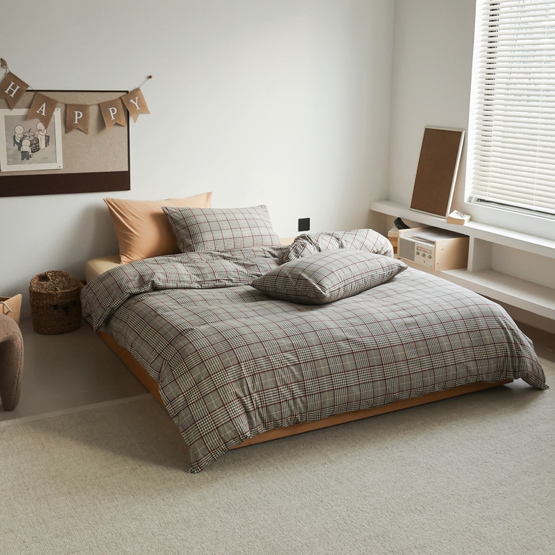 梦可莱家居 2025新款全棉针织四件套【加大系列】 千鸟格