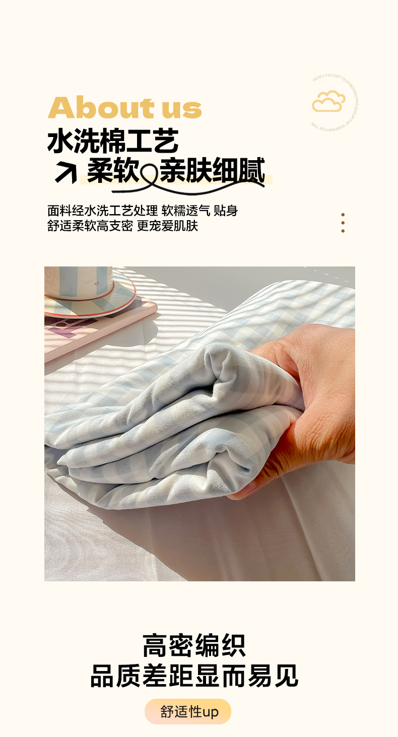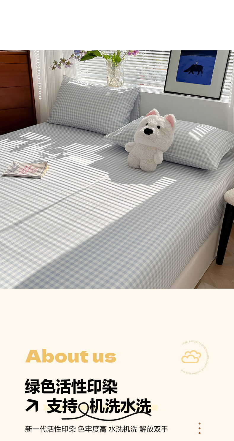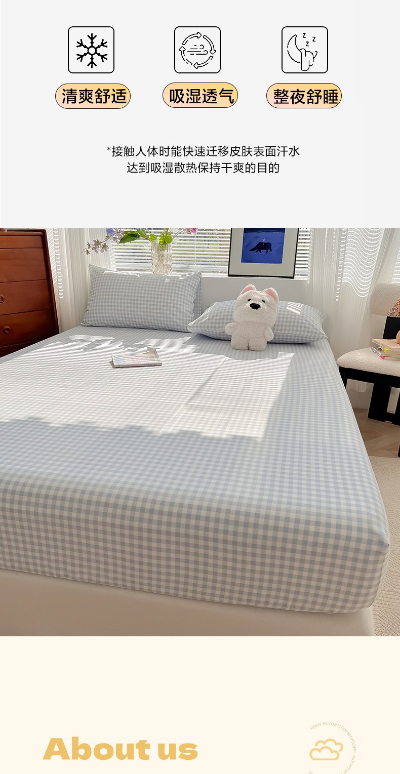 • 91家纺网 家纺一手货源 找家纺 韩巢家纺 2025新款A类纯色格子水洗棉床笠单件床罩床套 浅蓝格