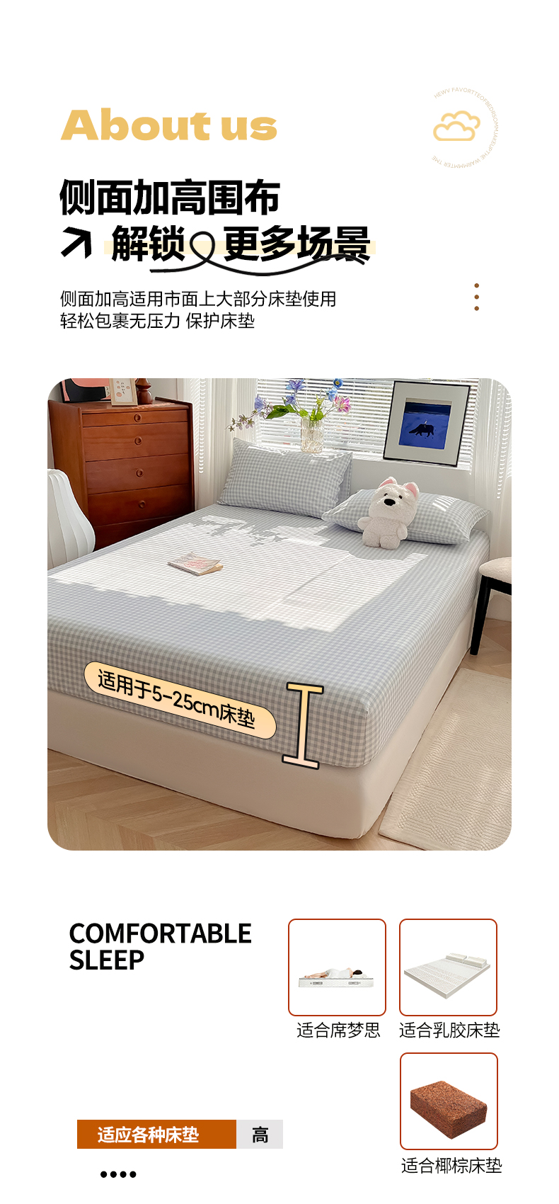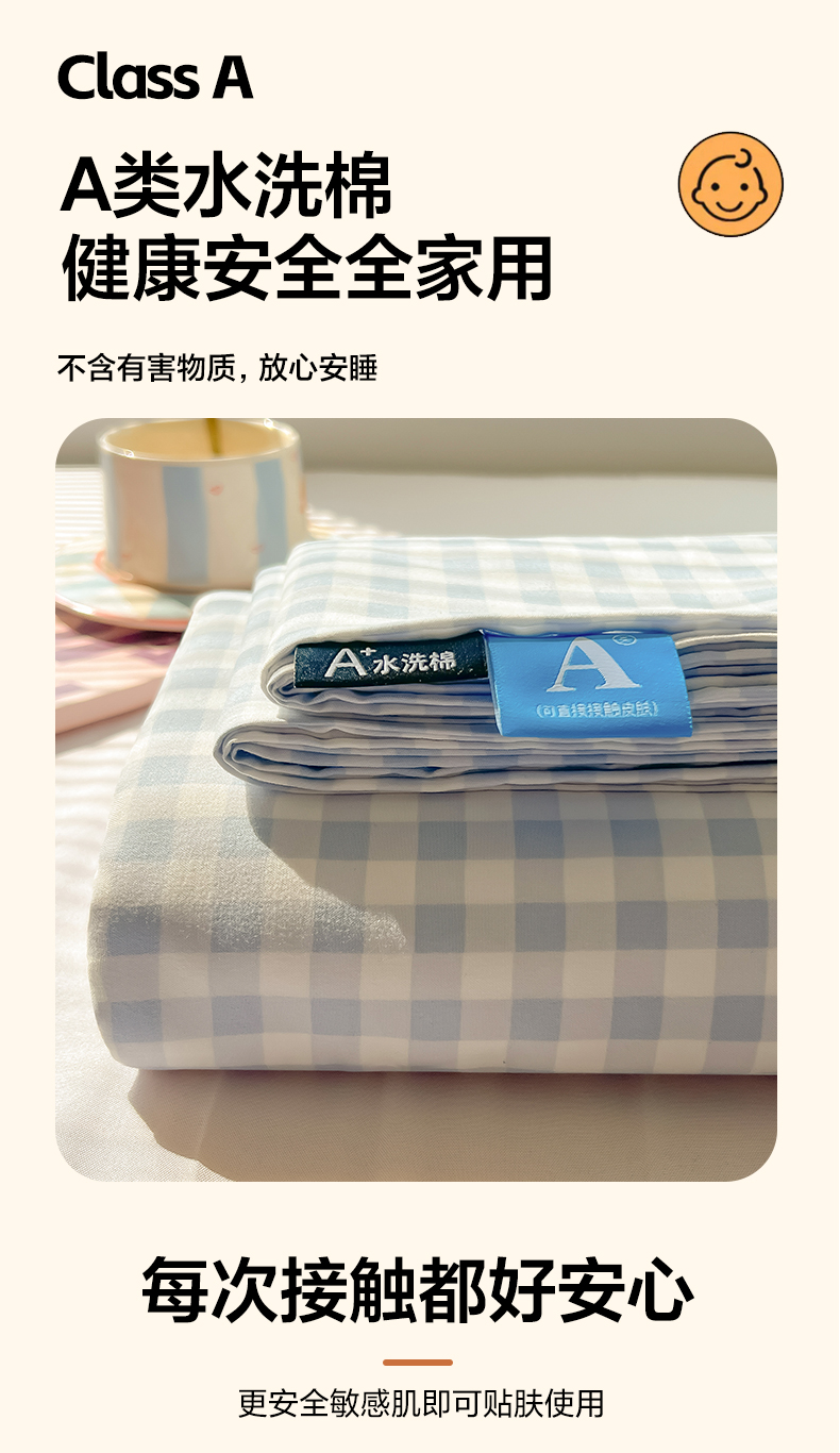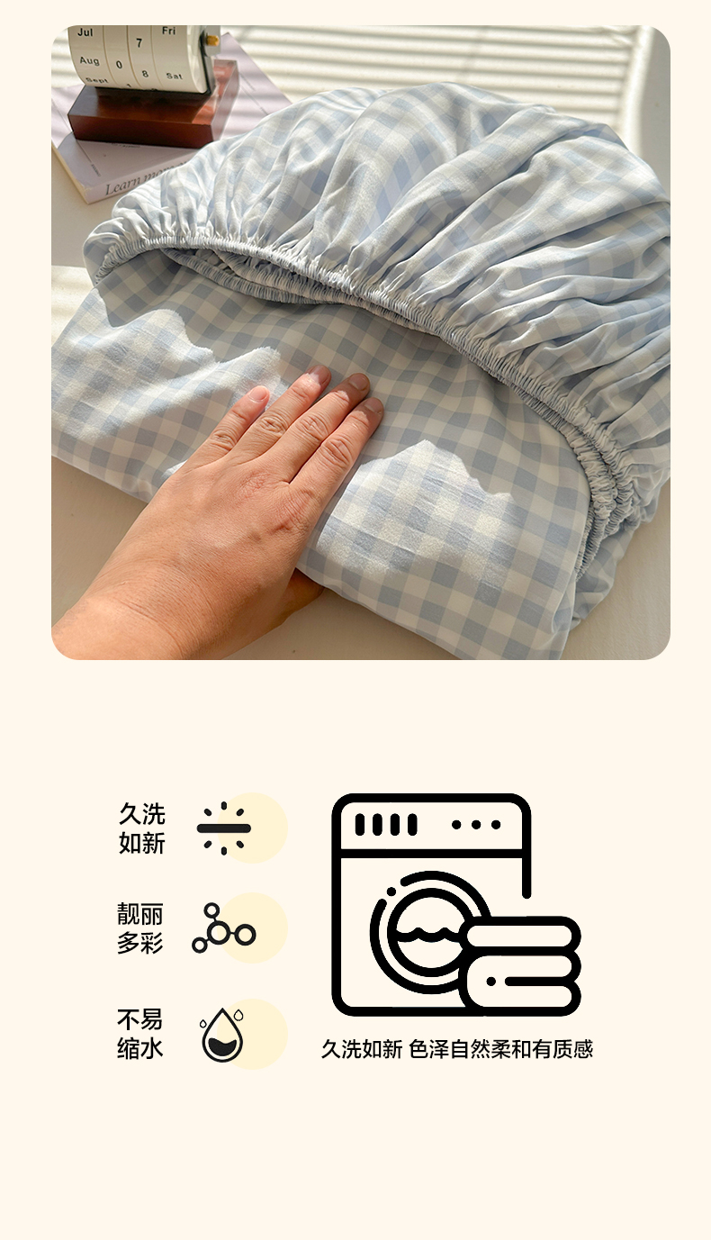 • 91家纺网 家纺一手货源 找家纺 韩巢家纺 2025新款A类纯色格子水洗棉床笠单件床罩床套 浅蓝格