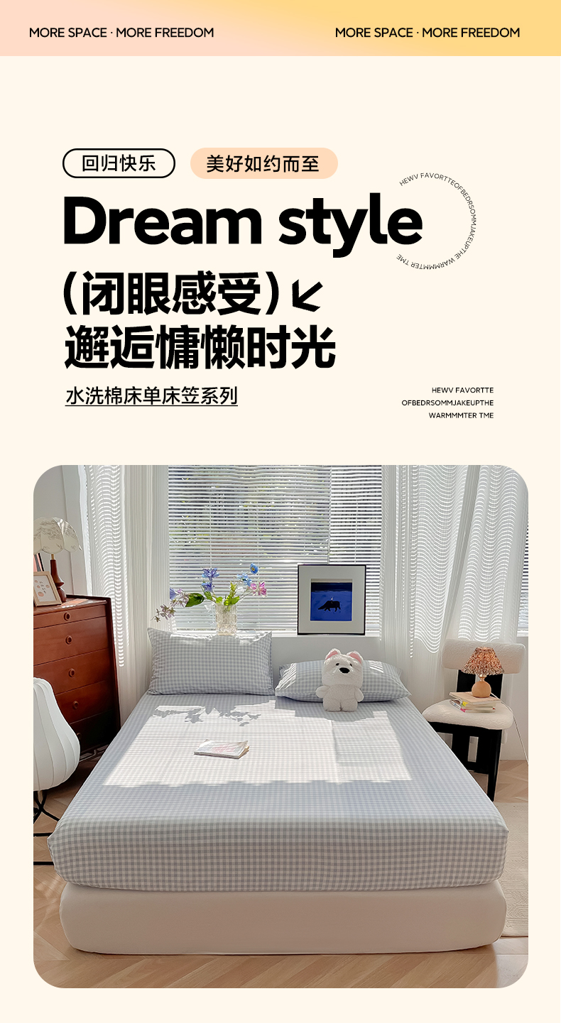 当前位置: 91家纺网 > 商品网购 > 床上用品 > 床笠 > 韩巢家纺 2025新款A类纯色格子水洗棉床笠单件床罩床套 浅蓝格