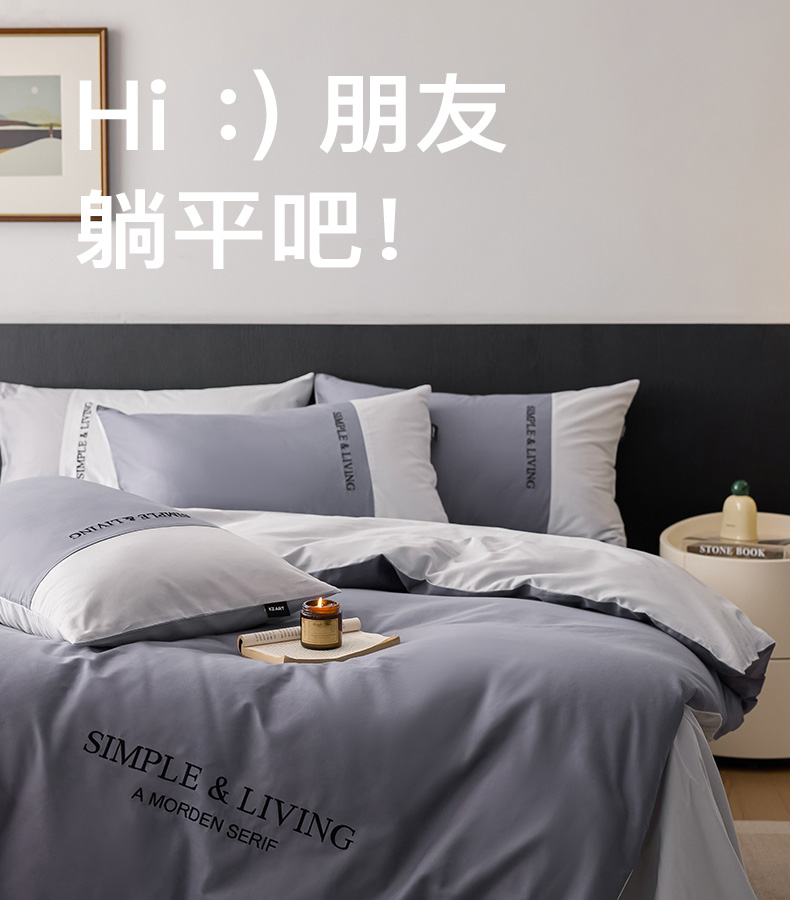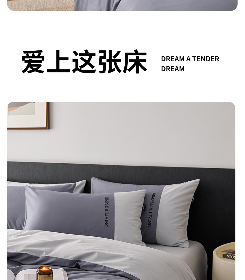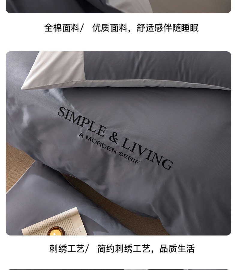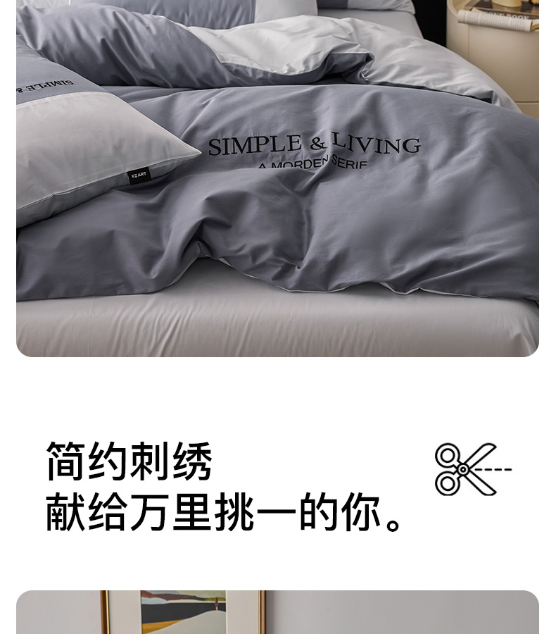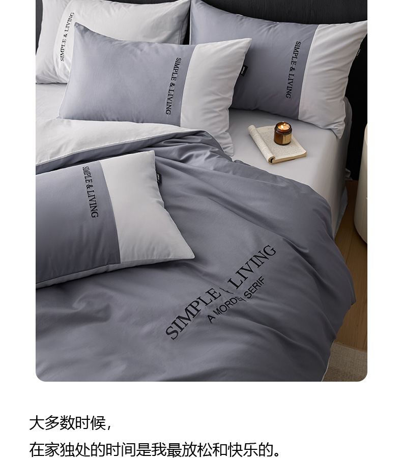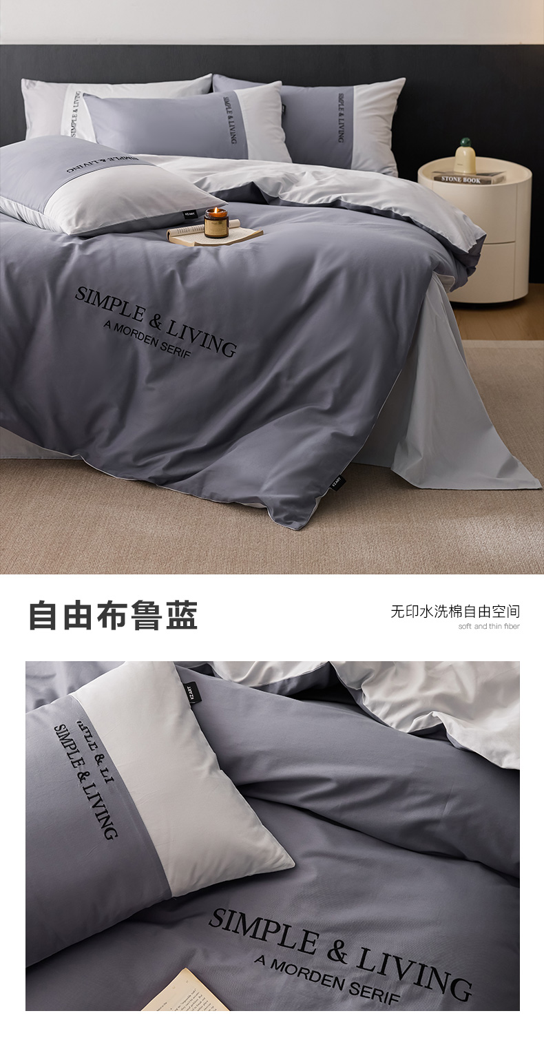 佳汐蓝家纺 2025春夏新款无印水洗棉自由空间四件套 自由布鲁蓝