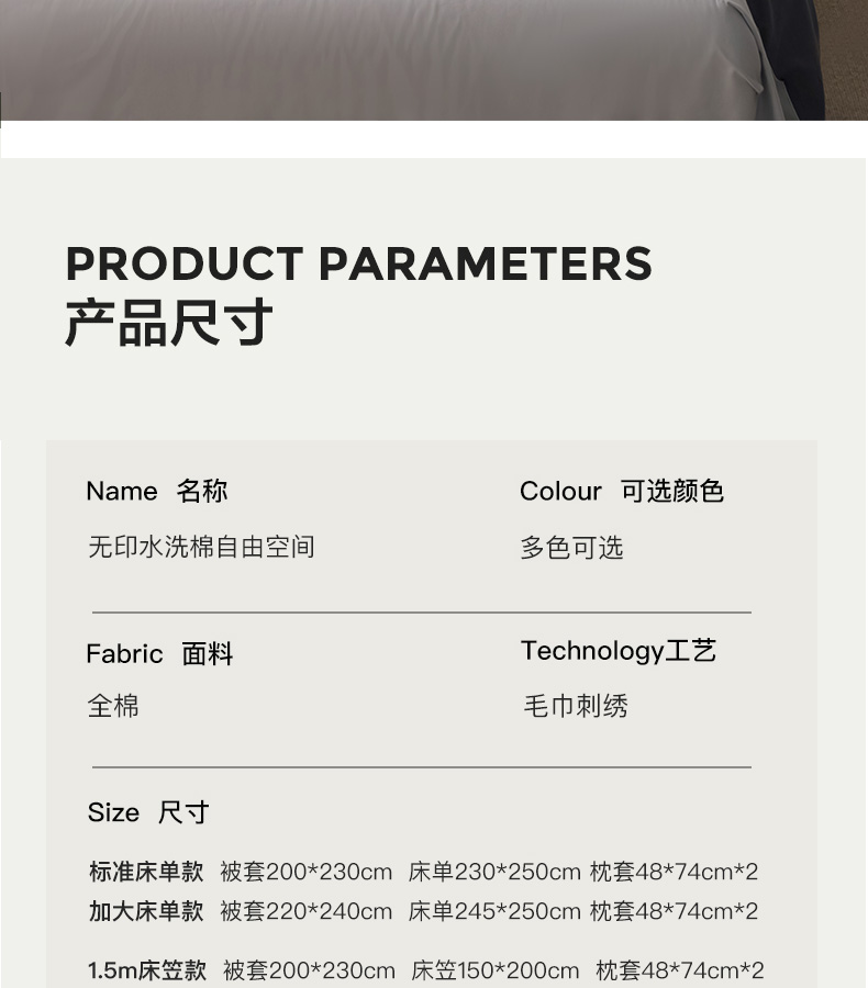 商品名称:佳汐蓝家纺 2025春夏新款无印水洗棉自由空间四件套 自由布鲁蓝