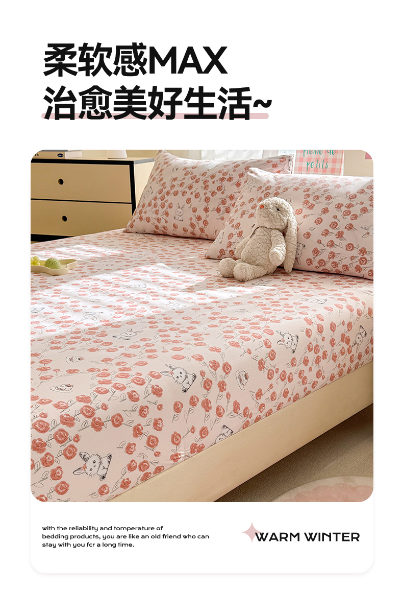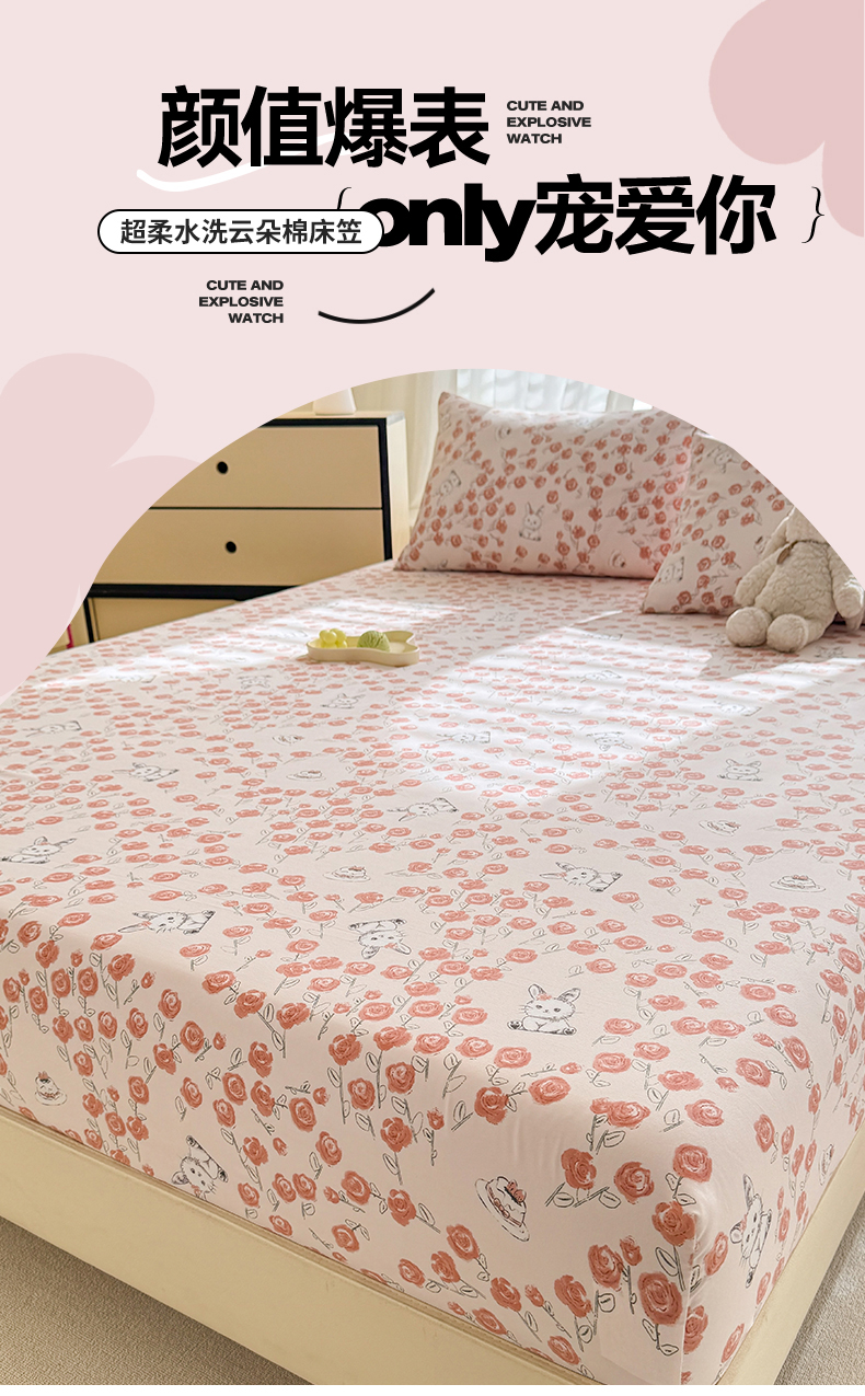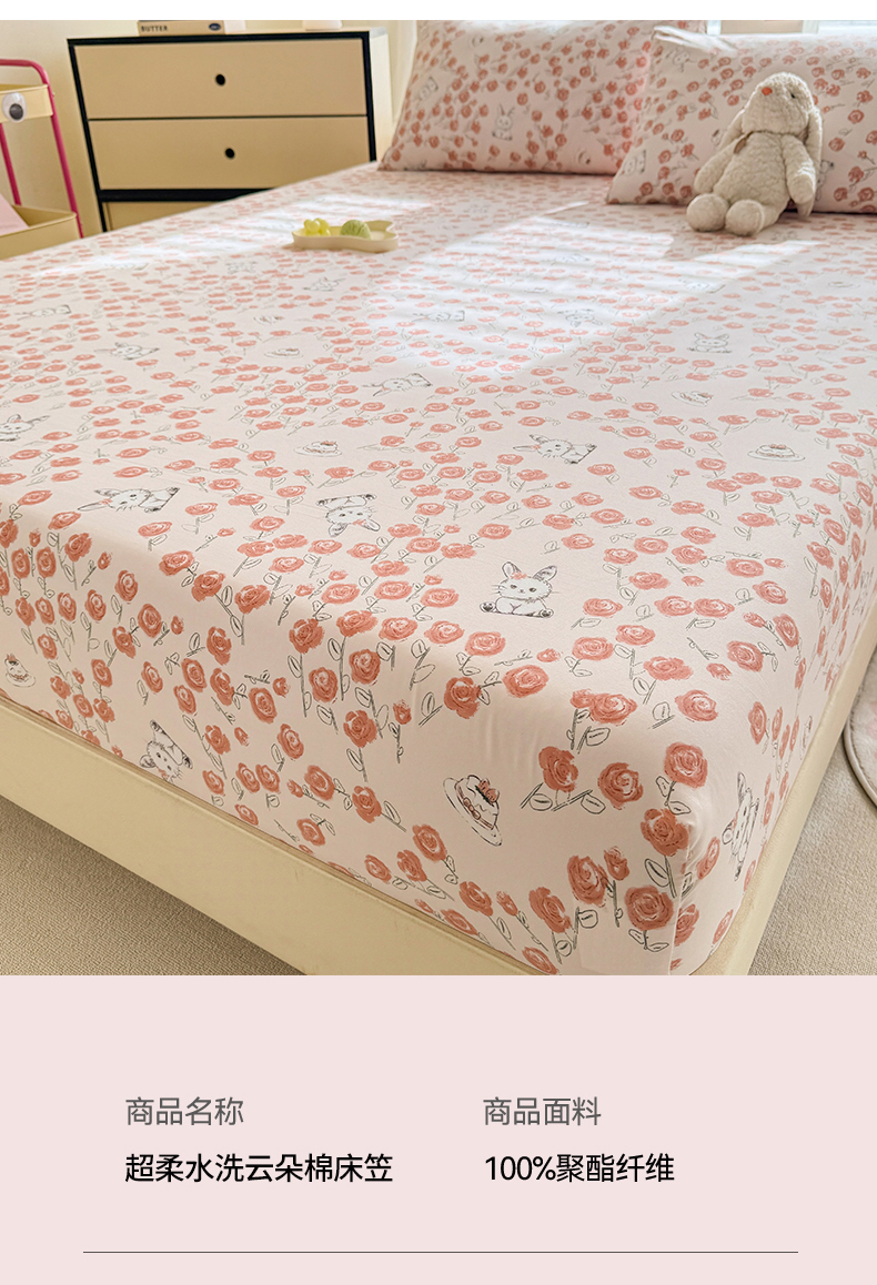 多品家纺 2025新款超柔水洗云朵棉单品床笠 玫瑰花园