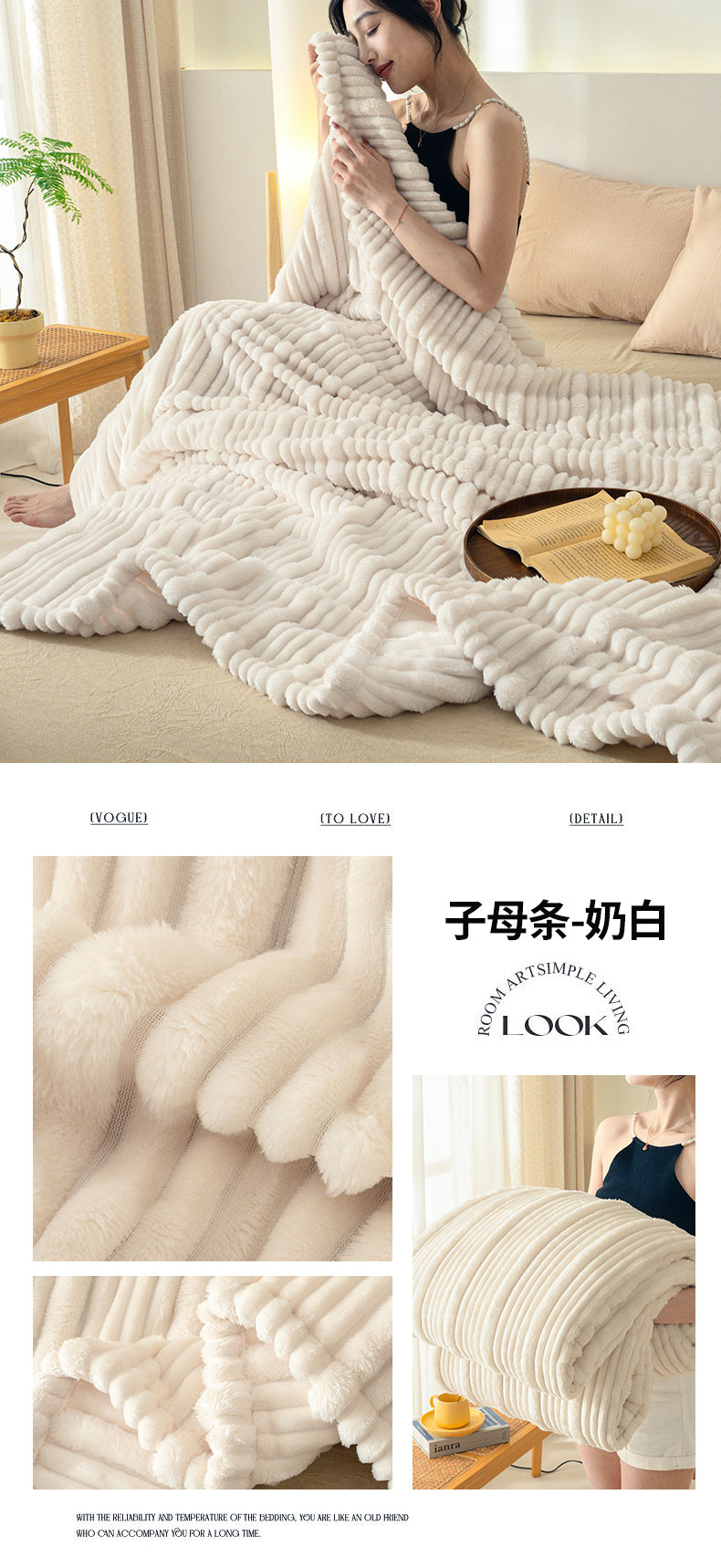 (买家秀不断货)A类母婴级兔兔绒毛毯北极绒毛毯双层毯子牛奶绒毛毯兔兔绒毯子午睡毯珊瑚绒毛毯羊羔绒毛毯 子母条-奶白