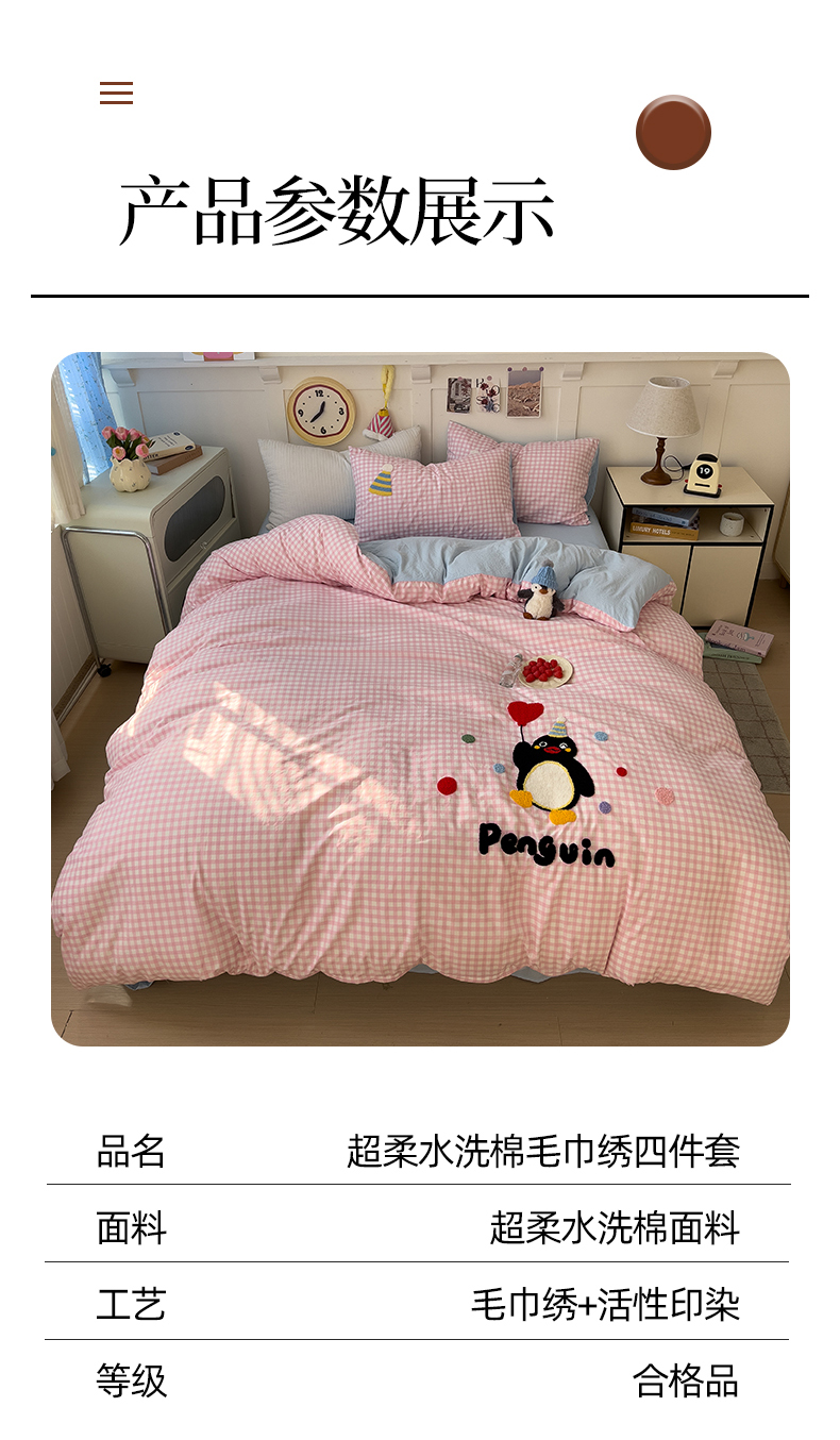 当前位置: 91家纺网 > 商品网购 > 床品套件 > 四件套 > 水洗棉四件套 > 水墨江南 2025新款超柔水洗棉毛巾绣系列四件套 小企鹅粉