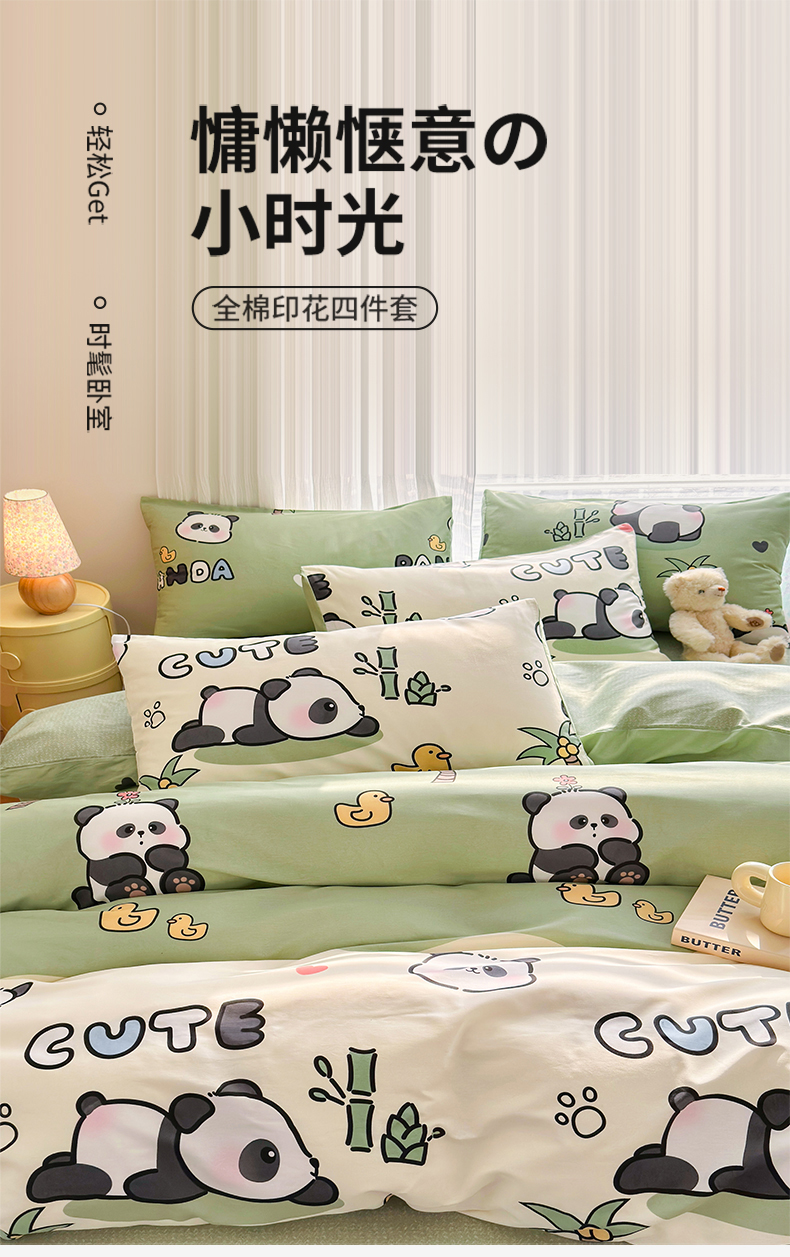 名兮家居 2025新款12868全棉纯棉四件套 熊猫乐园