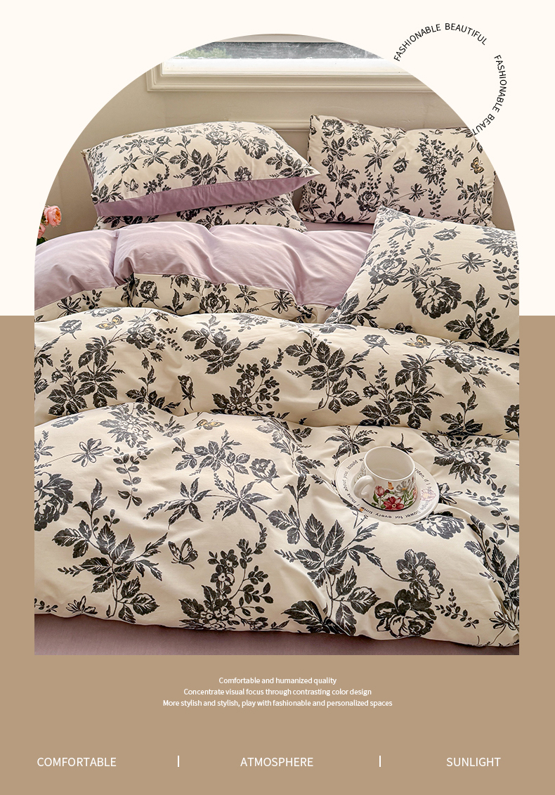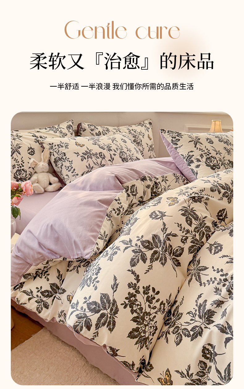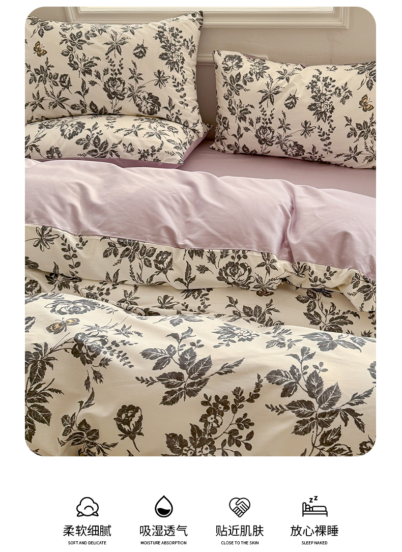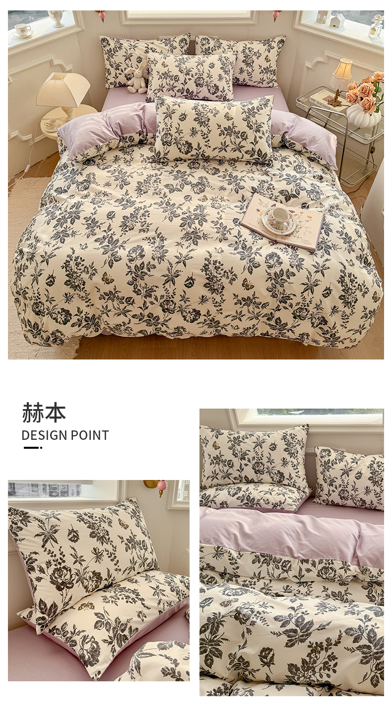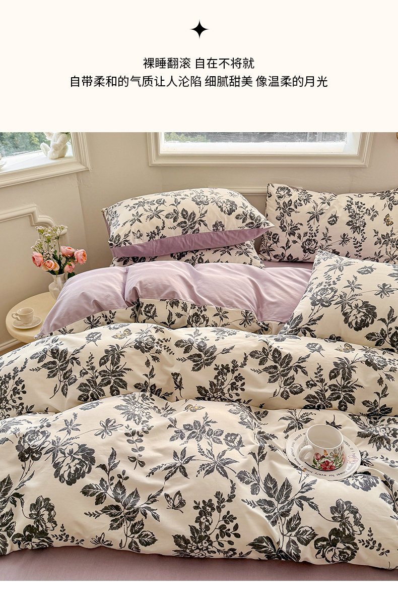 商品名称:名兮家居 2025新款13372全棉四件套-大花卉系列 赫本