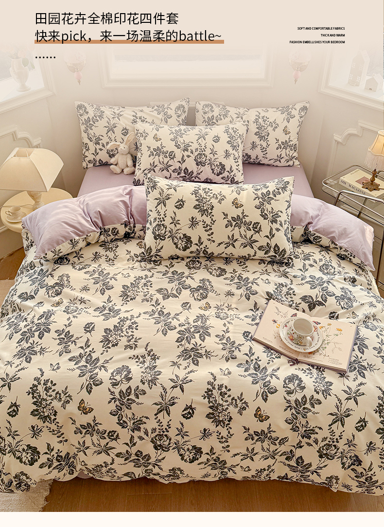 (总)名兮 2023新款全棉印花小清新四件套,爱莲娜,春暖花开,少女梦,小确幸,星辰入梦,幸运花,幽幽仙草,致青春
