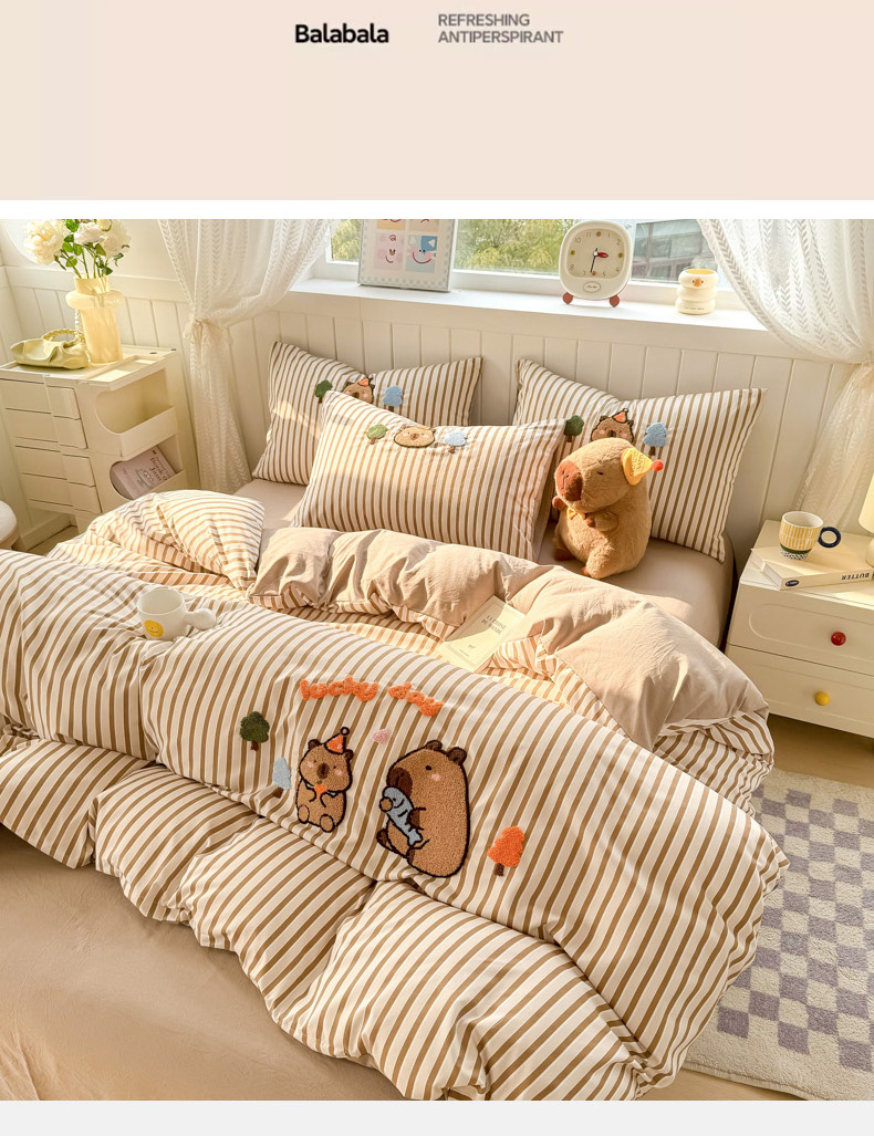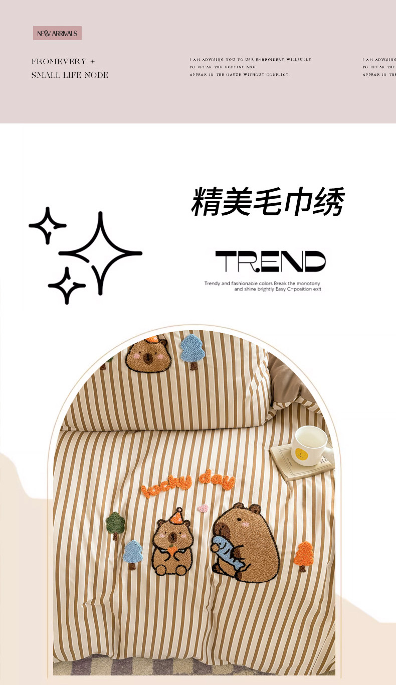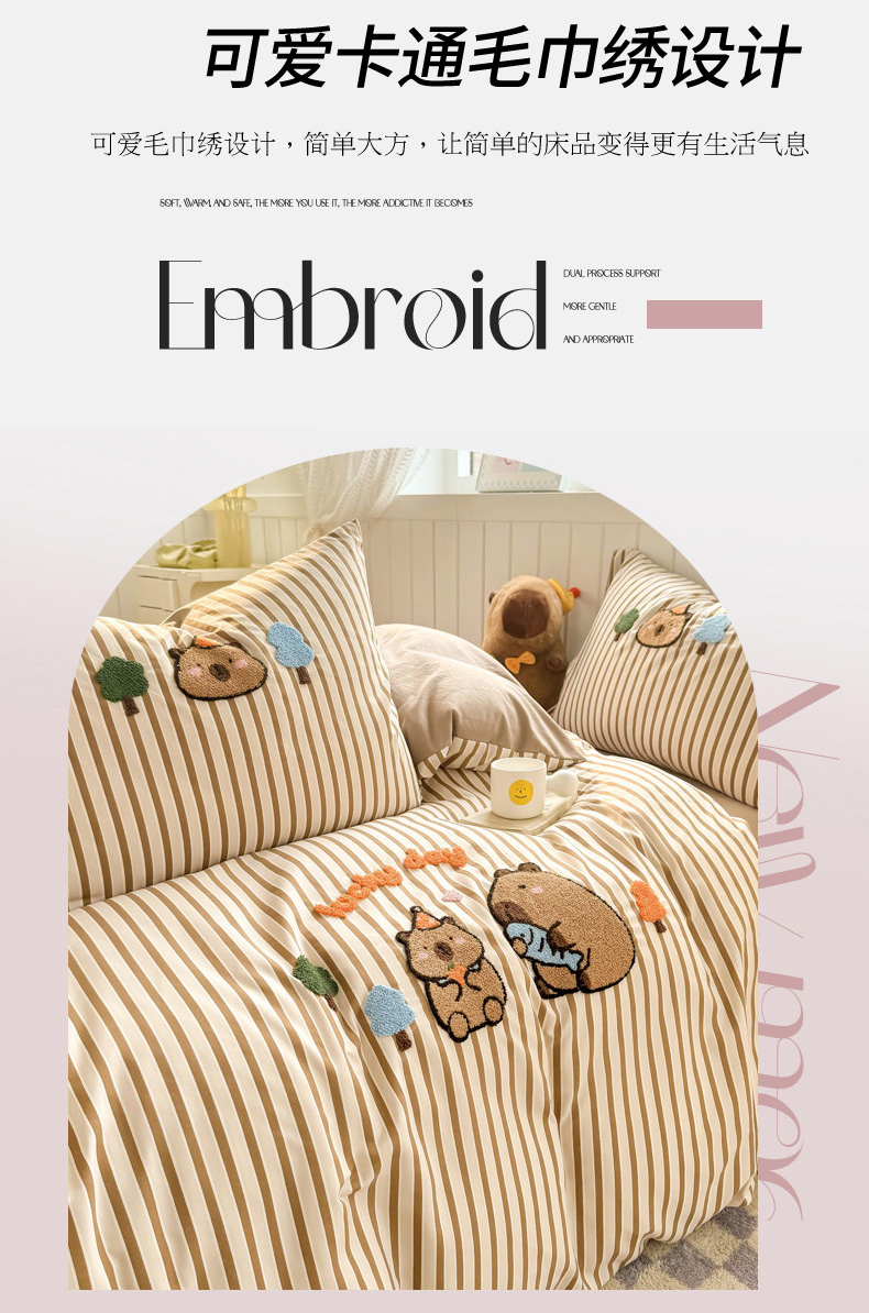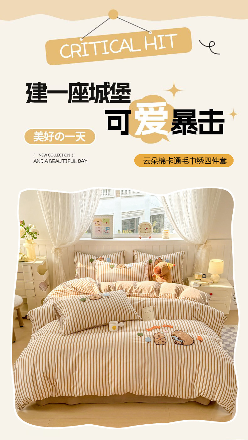 当前位置: 91家纺网 > 商品网购 > 床品套件 > 四件套 > 上尚居 2025新款云朵棉卡通毛巾绣四件套 可爱巴拉