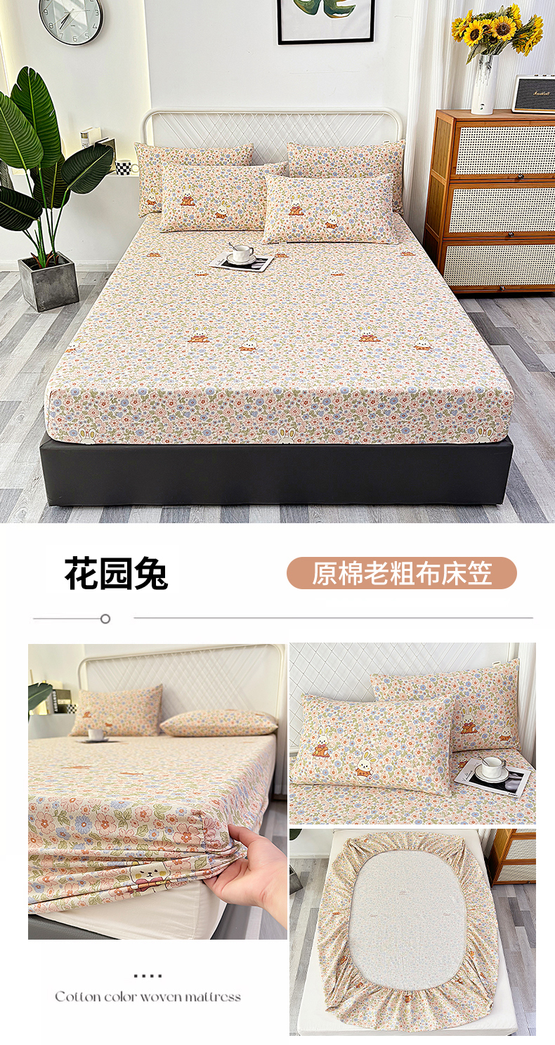 • 91家纺网 家纺一手货源 找家纺 伊而梦蚊帐 2025新款原棉老粗布床笠 花园兔