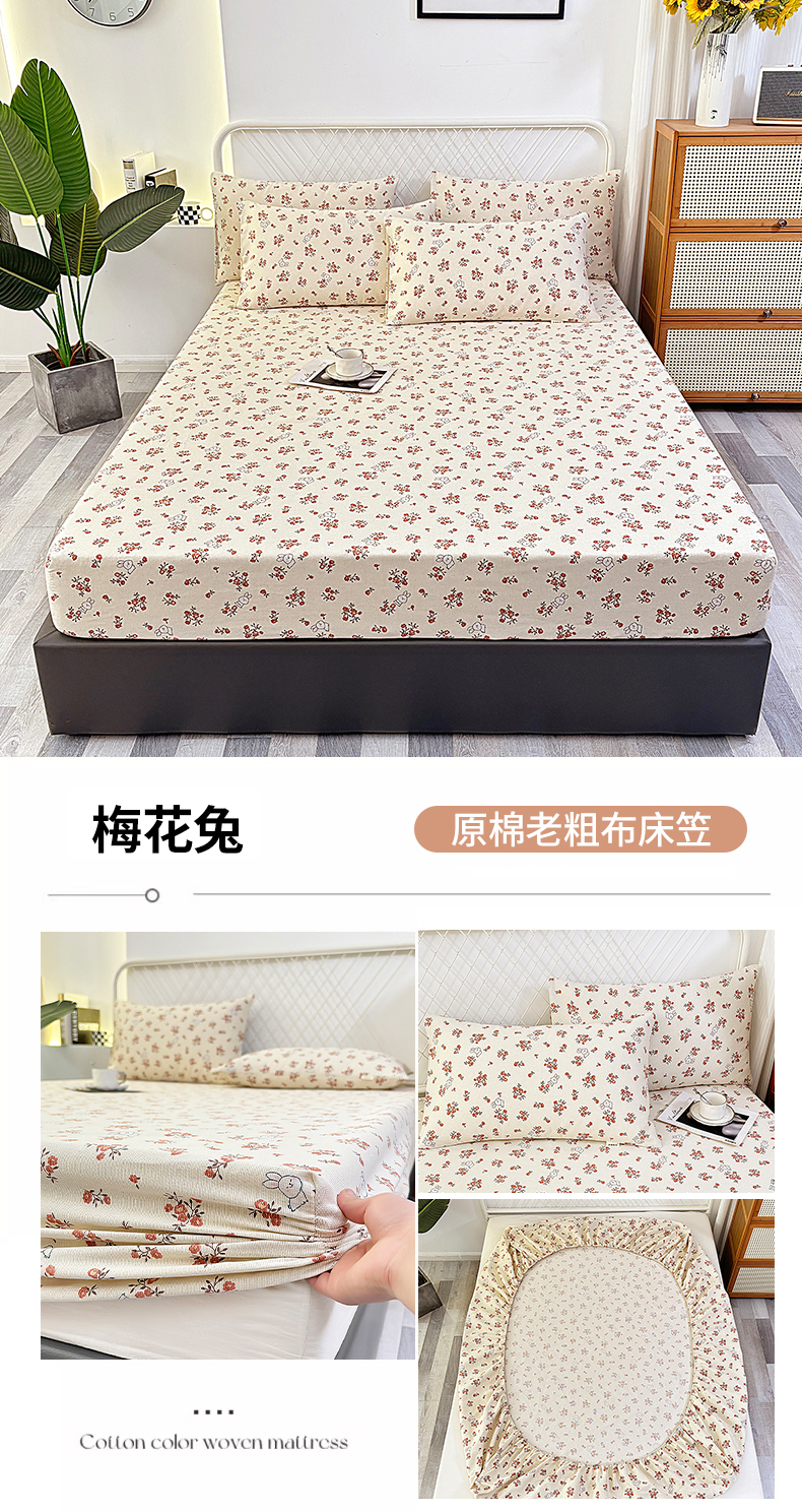 • 91家纺网 家纺一手货源 找家纺 伊而梦蚊帐 2025新款原棉老粗布床笠 梅花兔