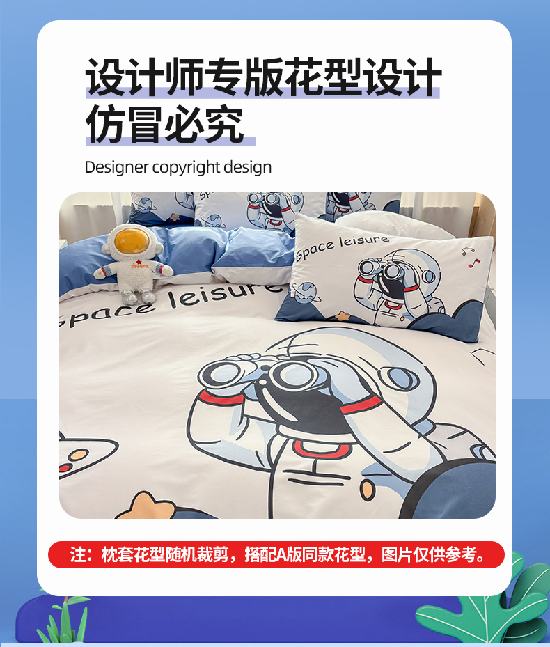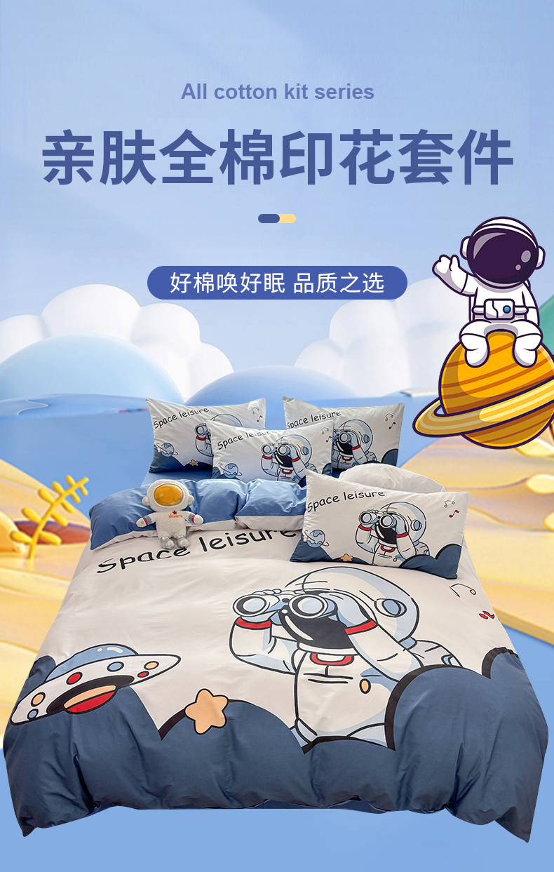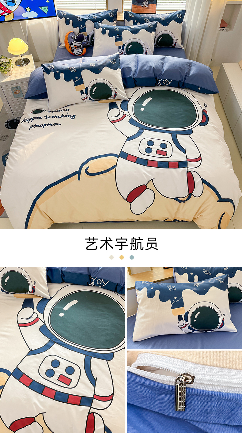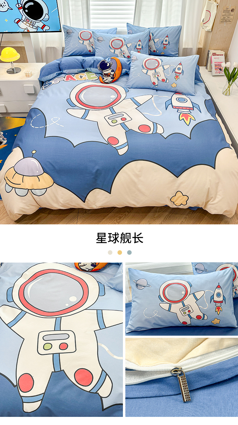 当前位置: 91家纺网 > 商品网购 > 床品套件 > 四件套 > 全棉普通四件套 > 孩子王 2025新款亲肤活性大版纯棉专版太空人卡通学生儿童宿舍四件套系列 挖掘机