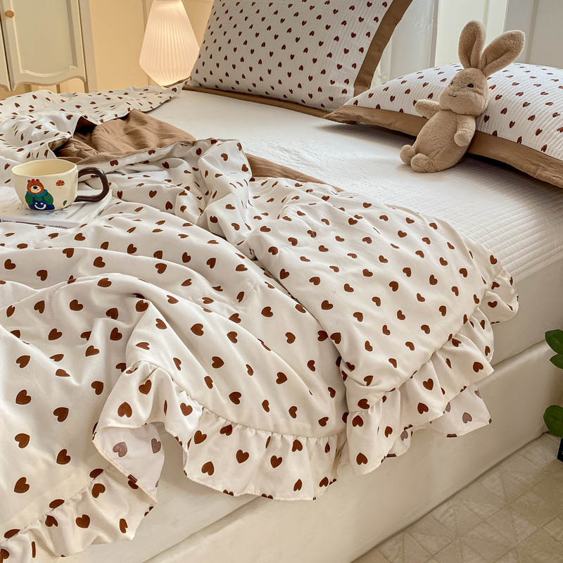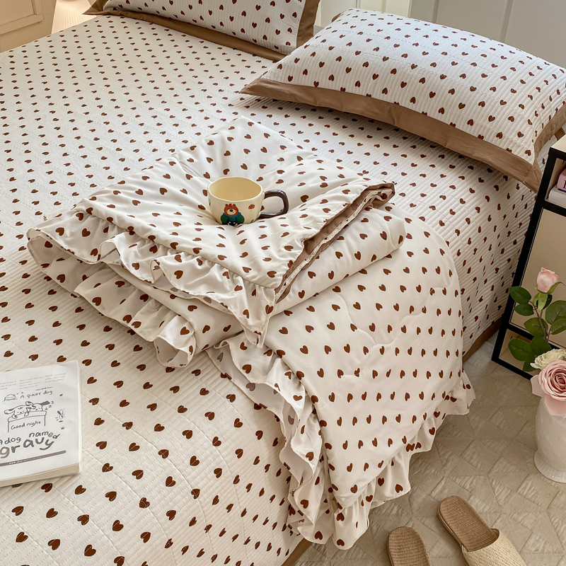 享受云端的柔软,是霎那间的心动~ 面料超软糯、、绗缝设计不易跑棉,贴身柔软又舒适,告别床单的褶皱与烦恼,法式小碎花。享受视觉的美感。沉浸式的入睡,仿佛进了森林氧吧。采用整张超细中空纤维棉 久用不板结 无甲醛,无芳香胺。婴幼儿可用