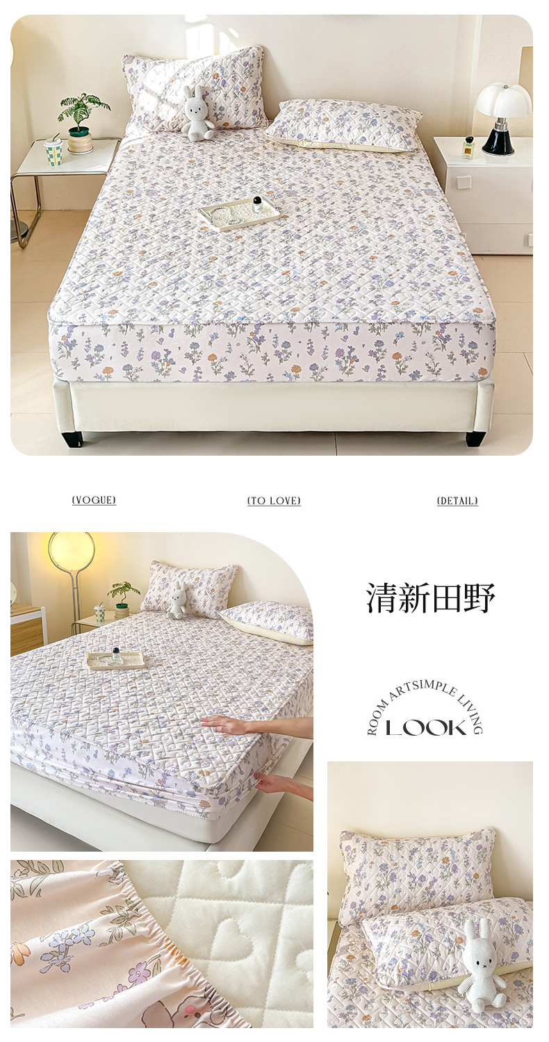 • 91家纺网 家纺一手货源 找家纺 禧缘家纺   2025新款全棉夹棉床笠三件套系列 清新田野