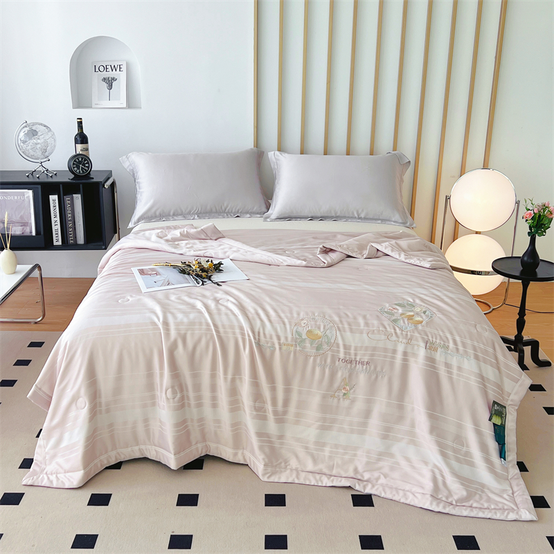 (总)优姿家纺 2025新款60S天丝绣花镂空夏被4,粉色,浅蓝色条纹,浅粉色条纹,深绿色条纹,天蓝色,藕粉色条纹