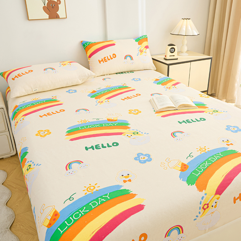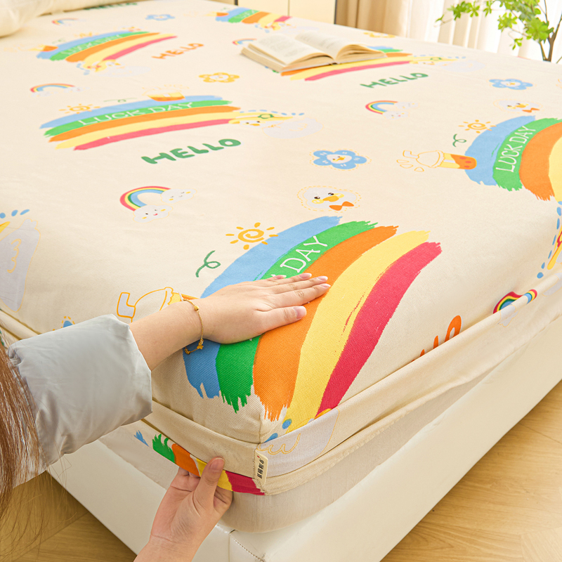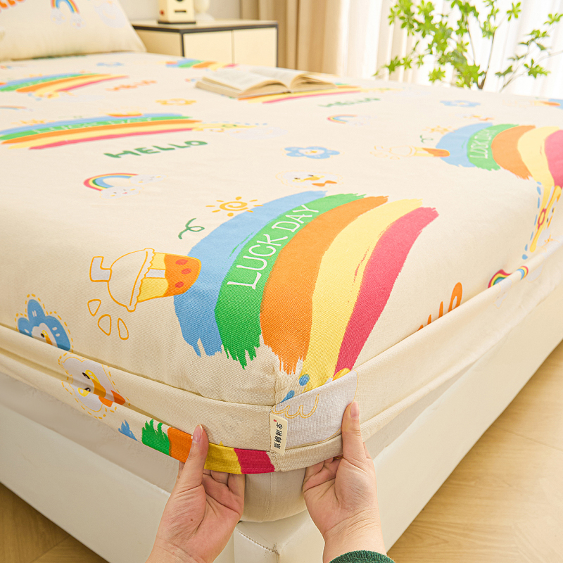 首爱2025新款原棉老粗布床笠支持特殊规格定制 常年不断货 大批量供应 彩虹鸭鸭